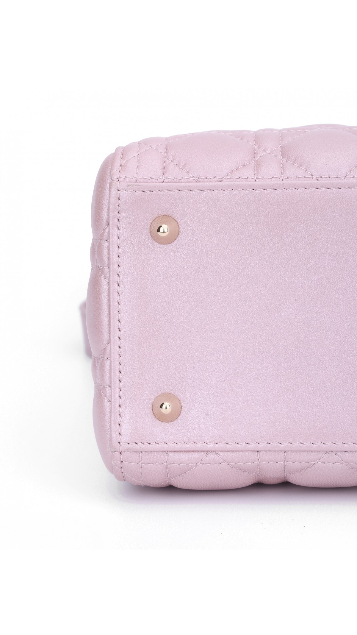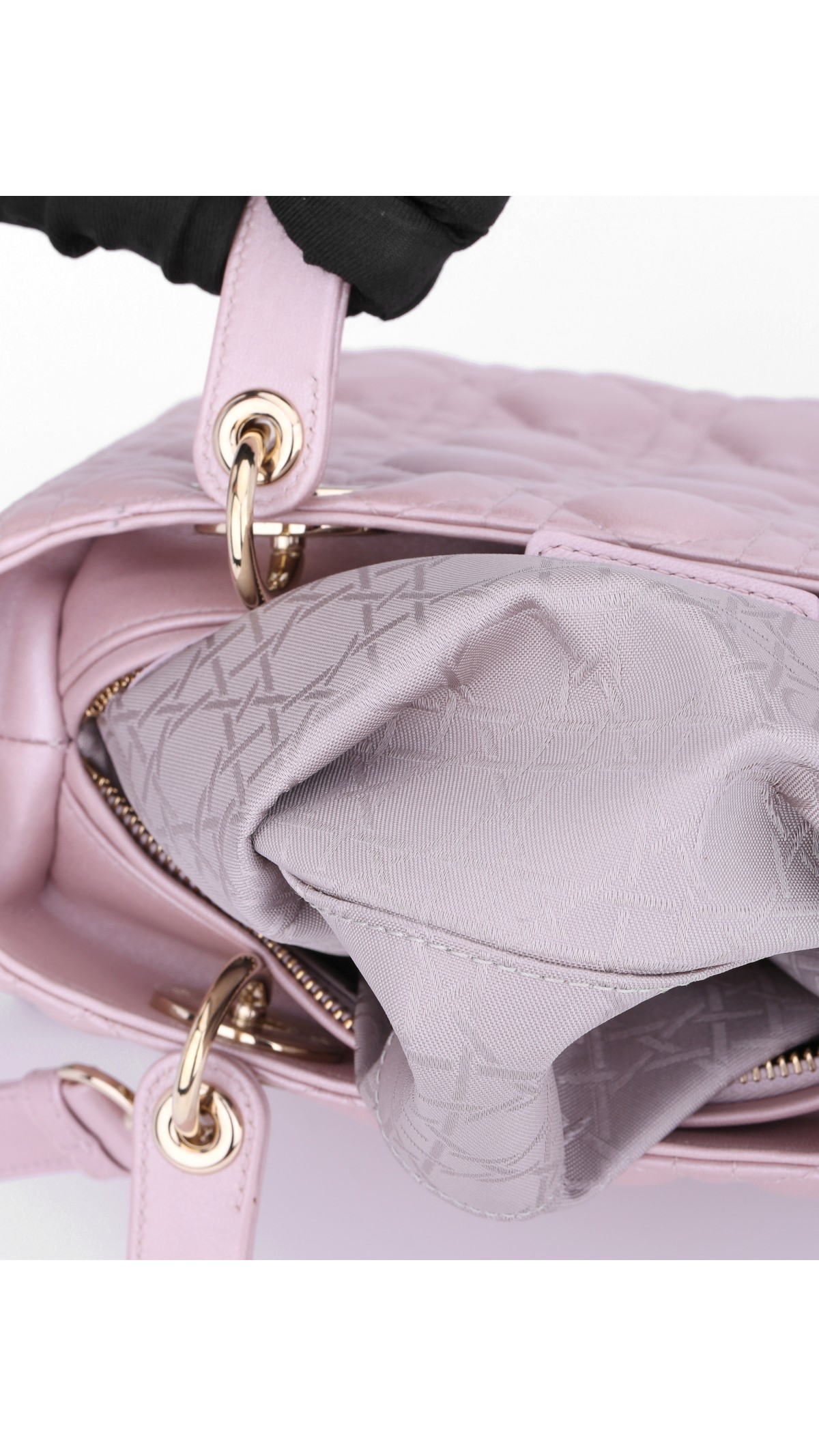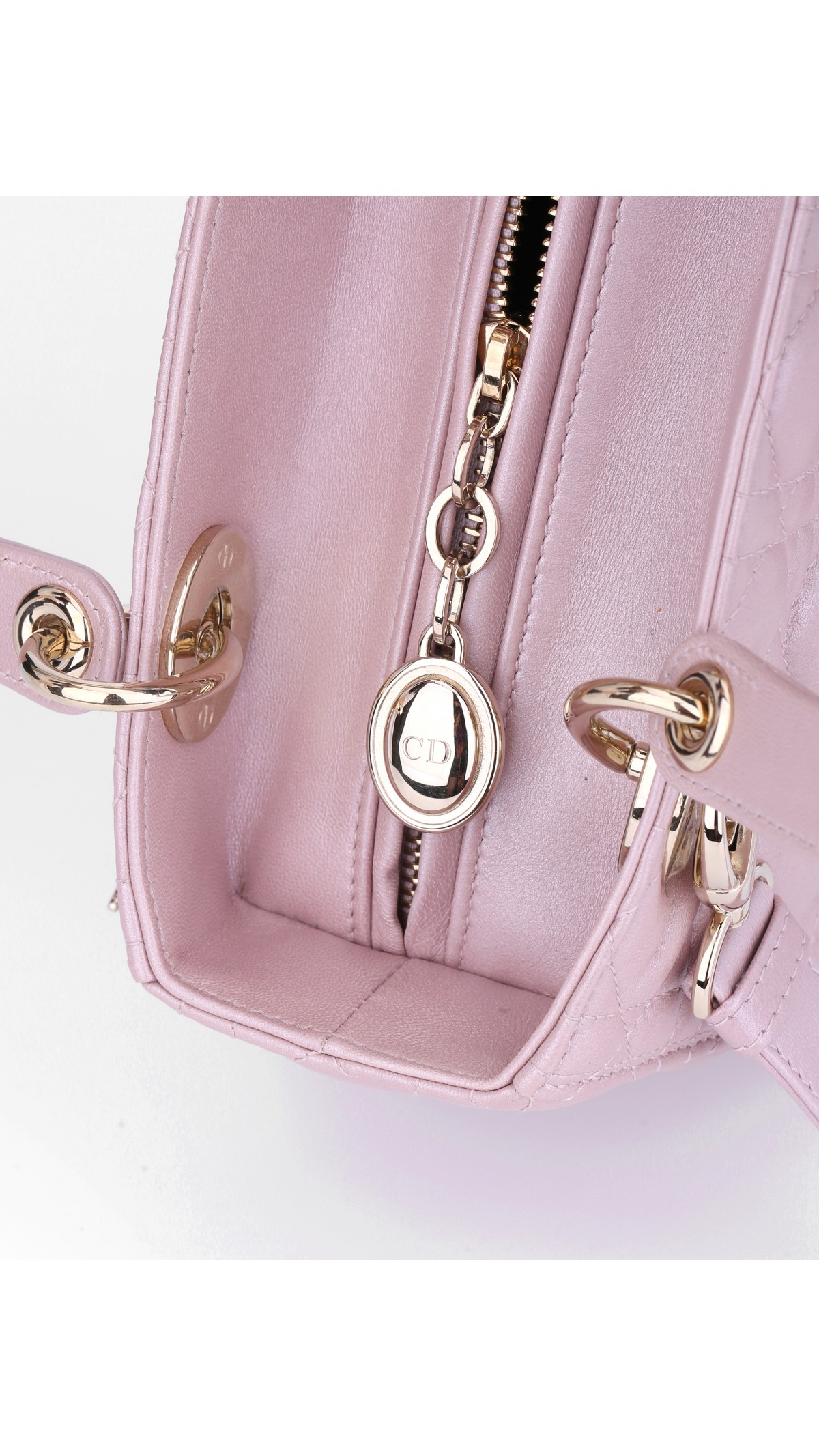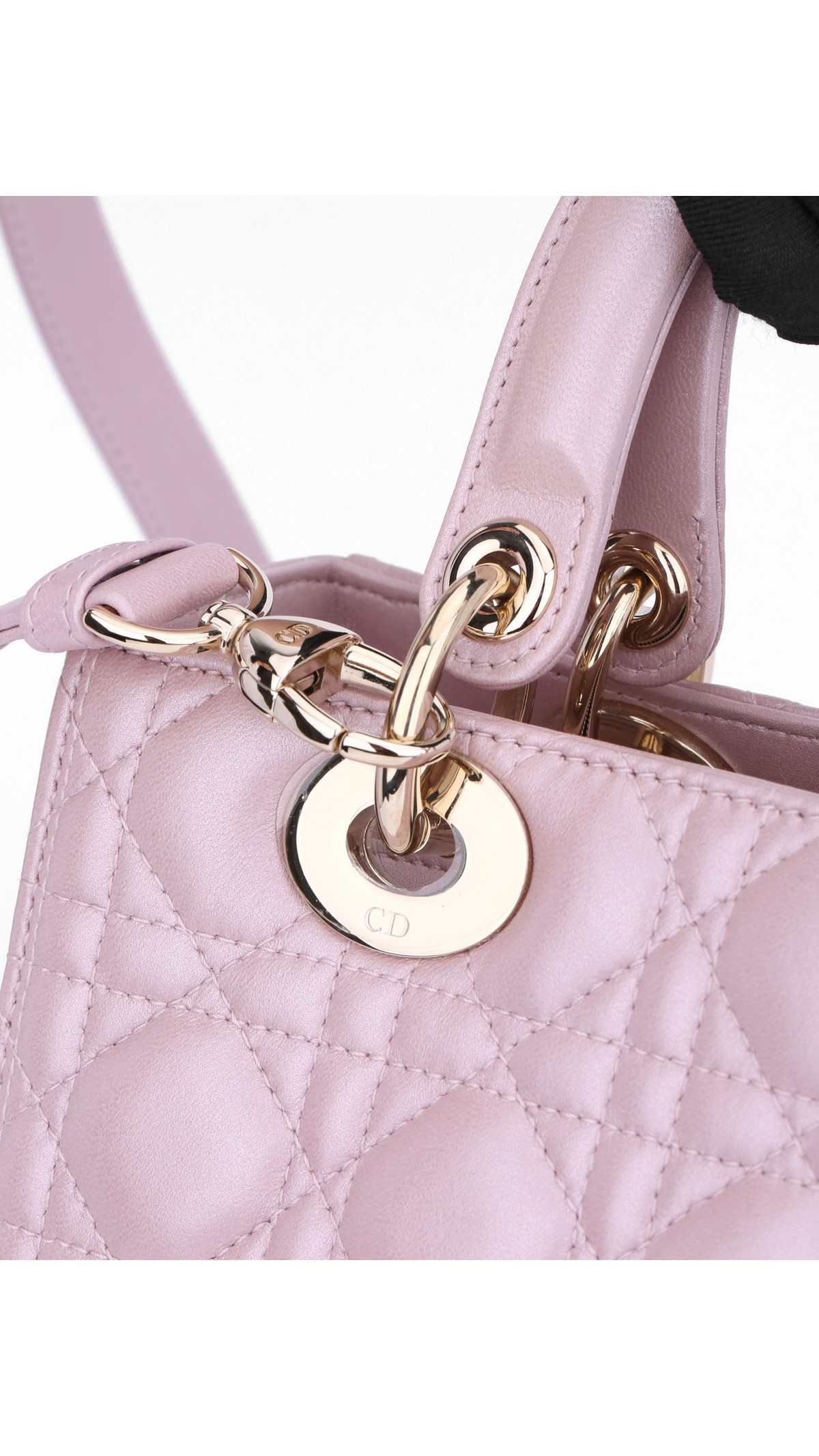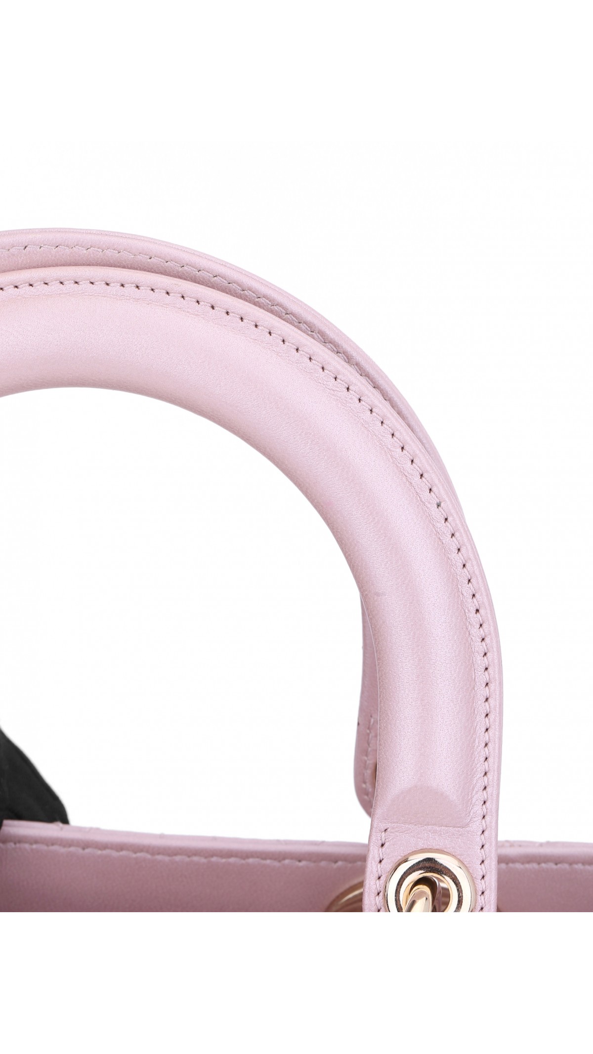En tidløs status og flott design markerer Lady Dior-vesken. Det er en ikonisk veske som folk fortsetter å investere i den dag i dag. En klassisk veske som passer til hverdag og til fint. Denne gangen i en nydelig perle-rosa pastell farge med metallic stil. Pastell farger Kommer inn trend i vår 2024 sier Elle Norge. Nypris for vesken ligger rundt 71000,-