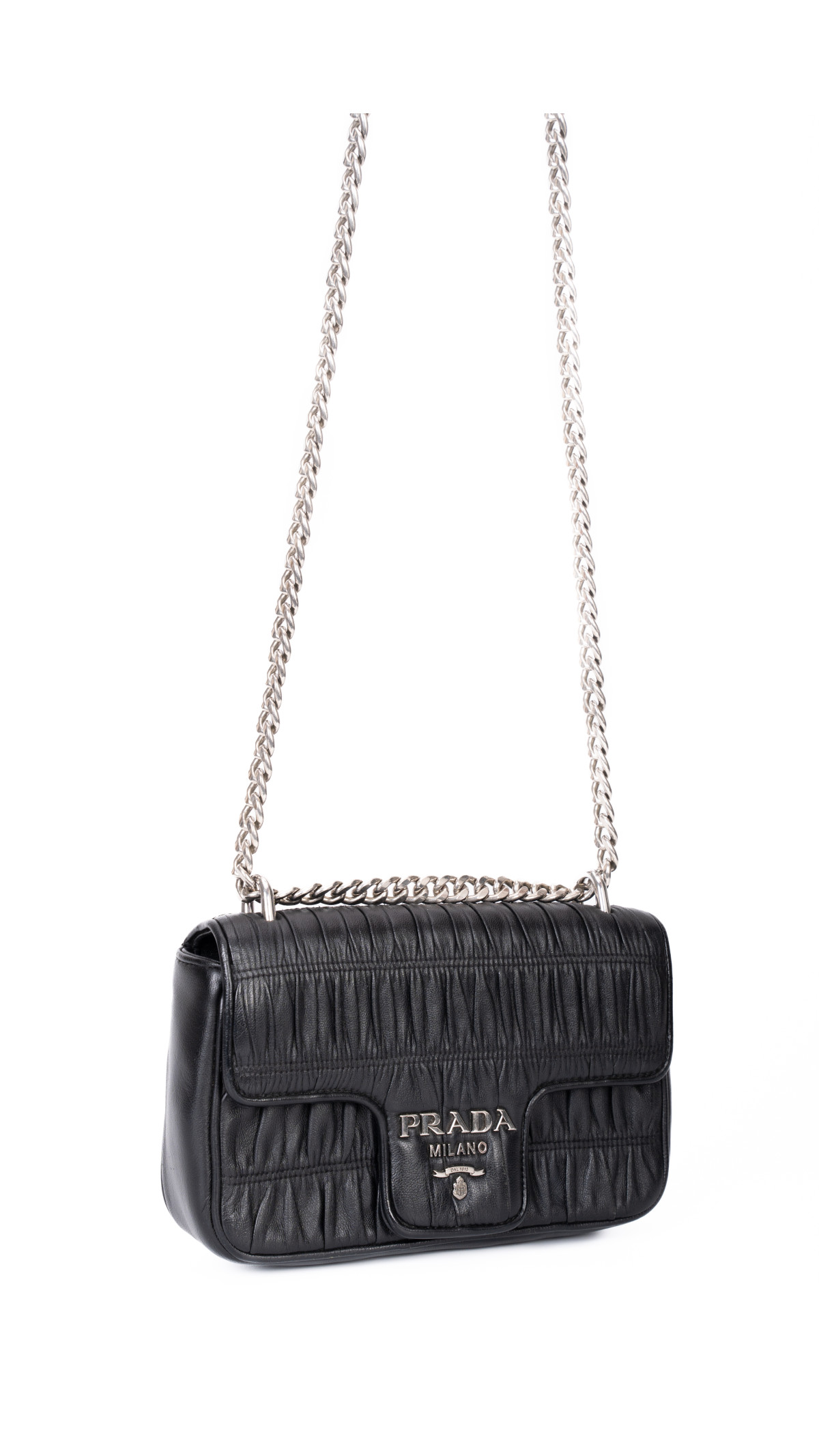 Prada Gaufre Nappa Chain Shoulder Bag Black