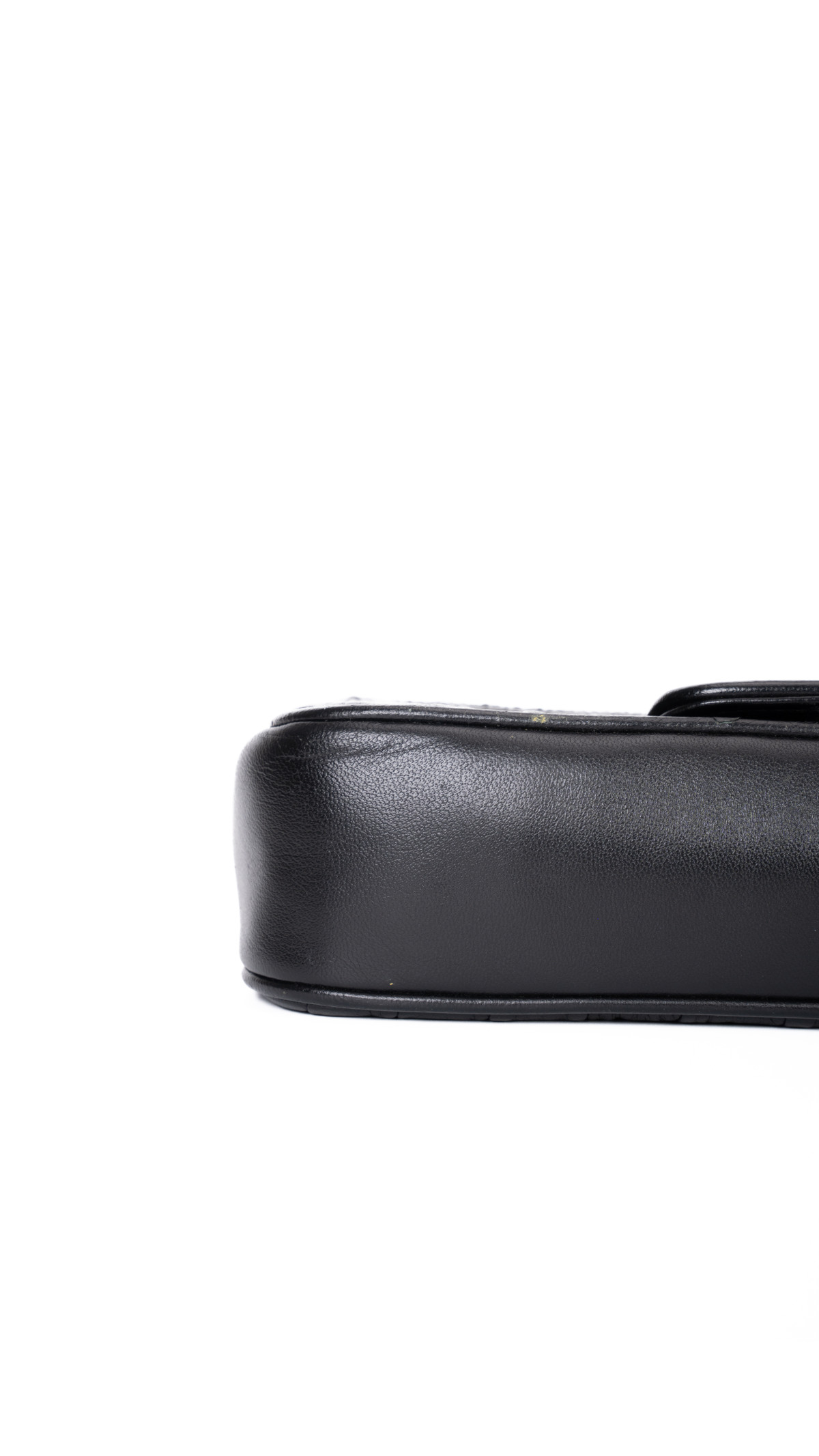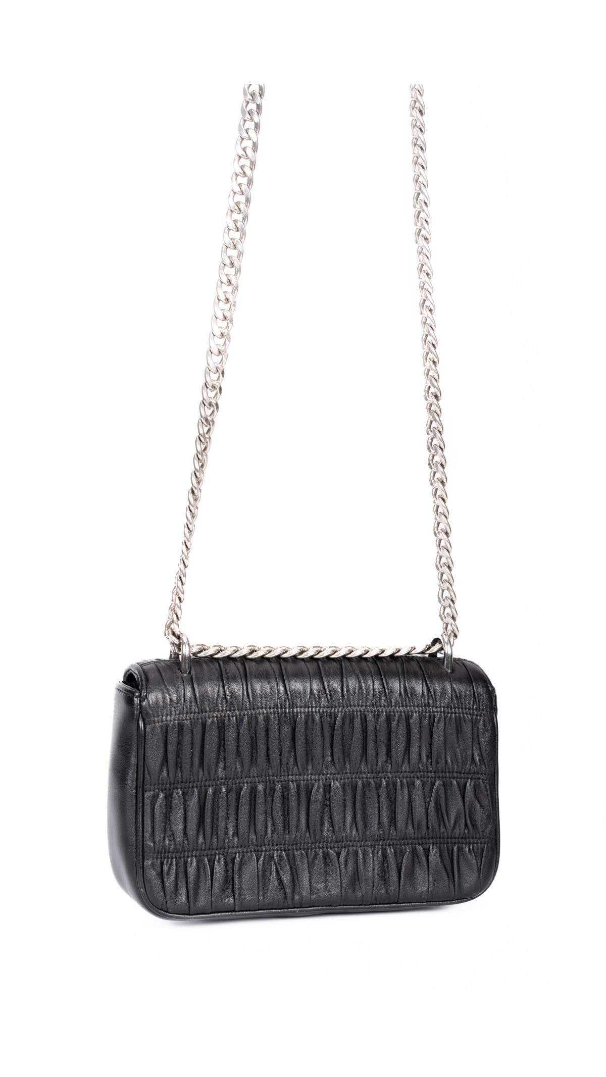 Prada Gaufre Nappa Chain Bag i sort nappaskinn er en elegant og tidløs veske, kjent for sitt karakteristiske rynkede skinn og sofistikerte design. Den har sølvfarget hardware og en solid kjedestropp som kan bæres både på skulderen og crossbody.