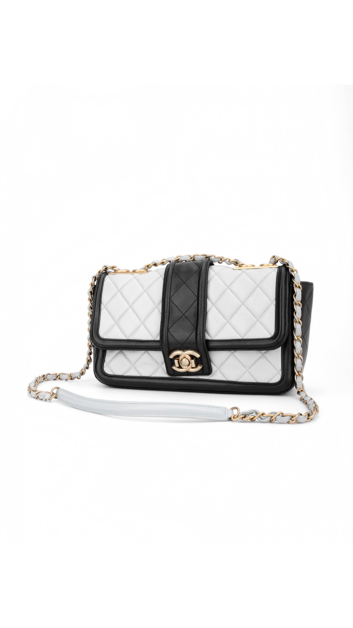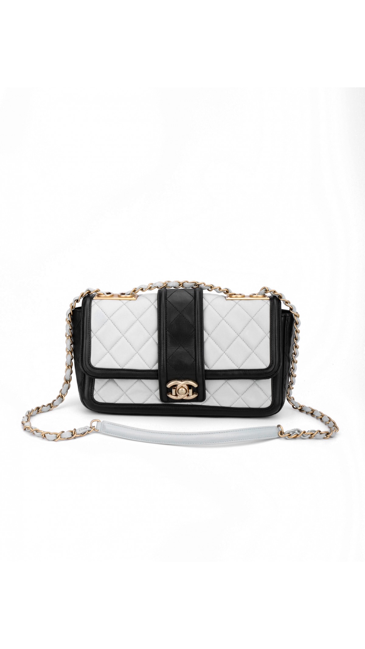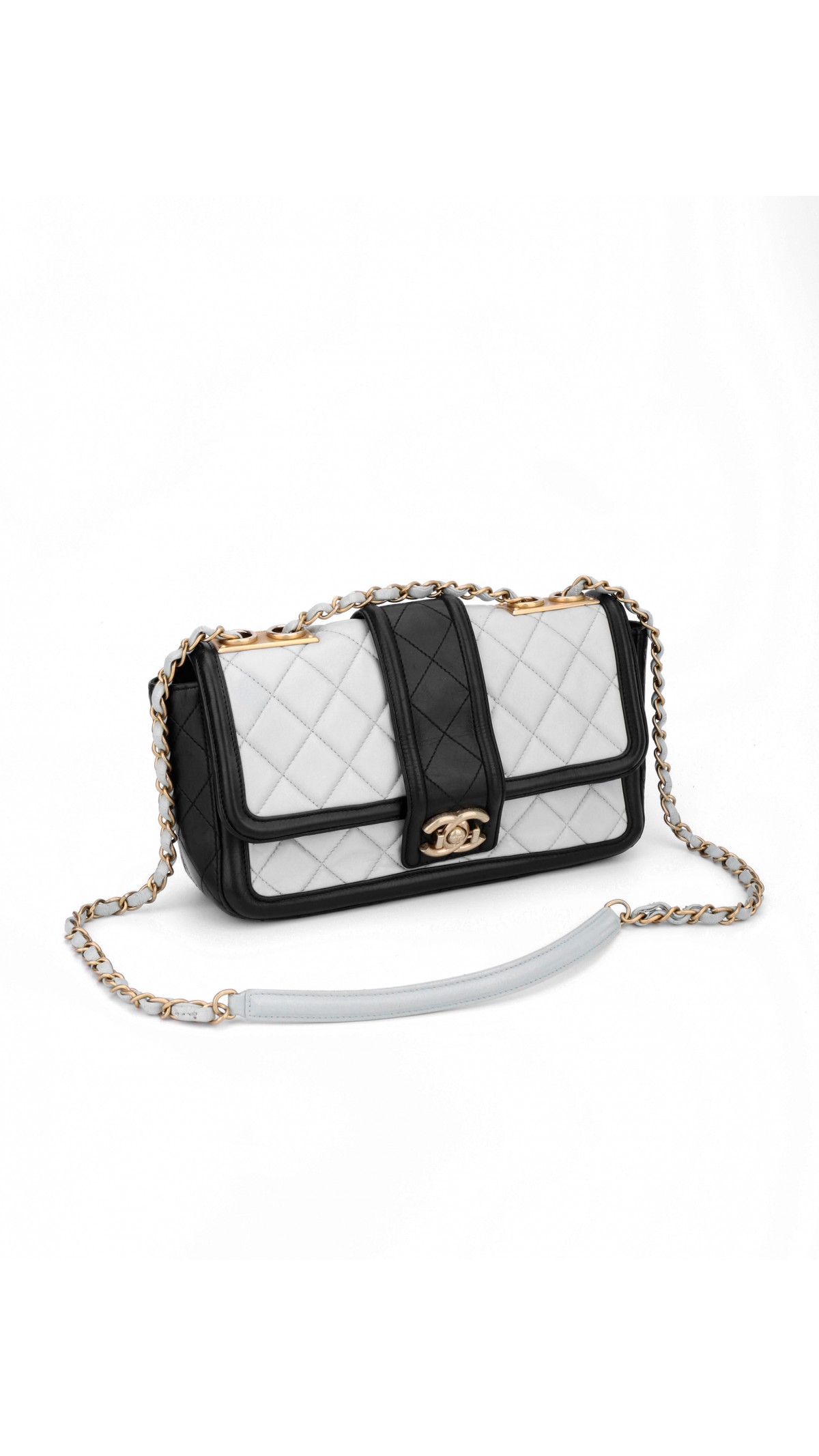 Chanel Single Flap Shoulder Bag - Two Toned Light Blue and Black