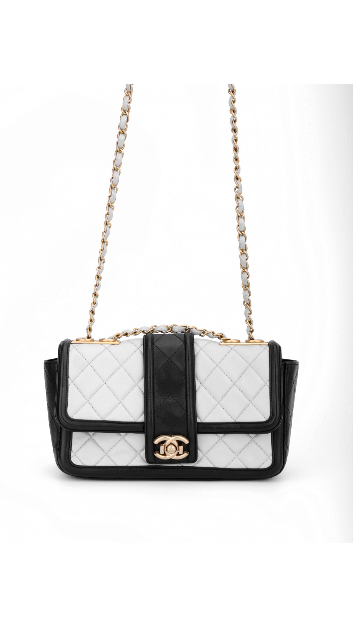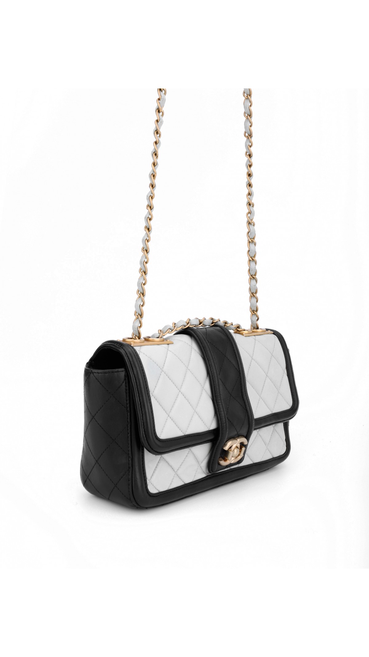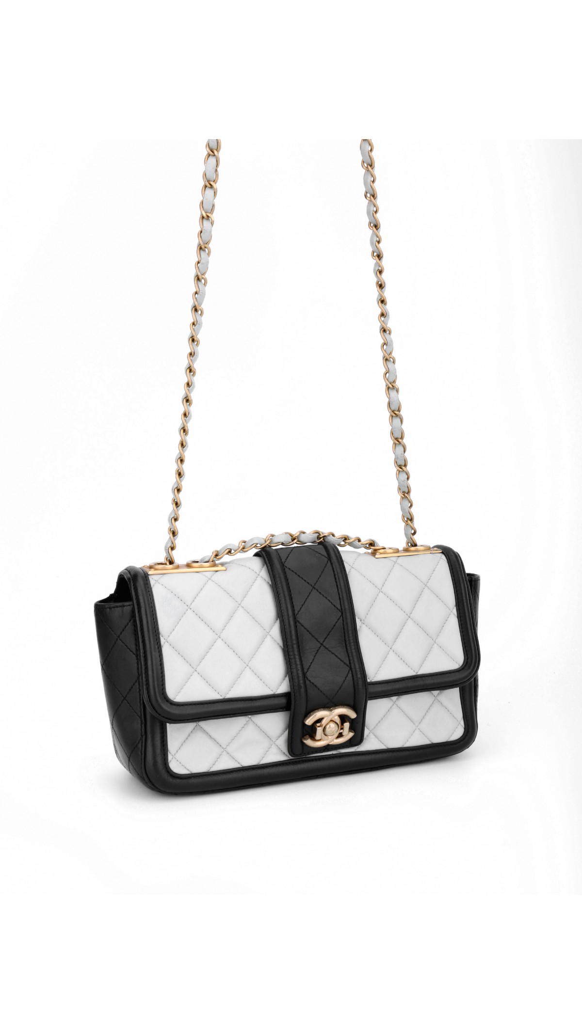 Chanel Single Flap Shoulder Bag - Two Toned Light Blue and Black