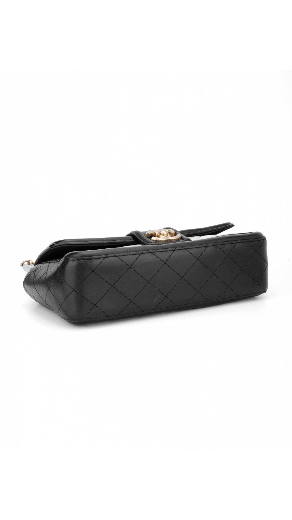 Denne klassiske Chanel Flap Bag er laget av lammeskinn, hardware belagt med 24k gull. En ekte vintage skatt, et Must have for deg som elsker Chanel! Vesken kommer med serienummer som er på en lapp inni vesken.