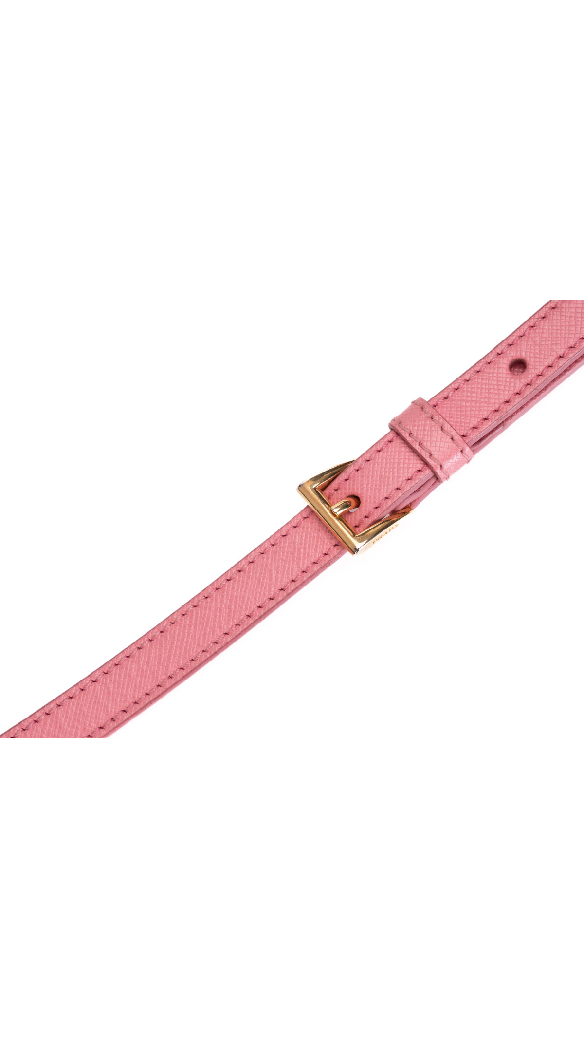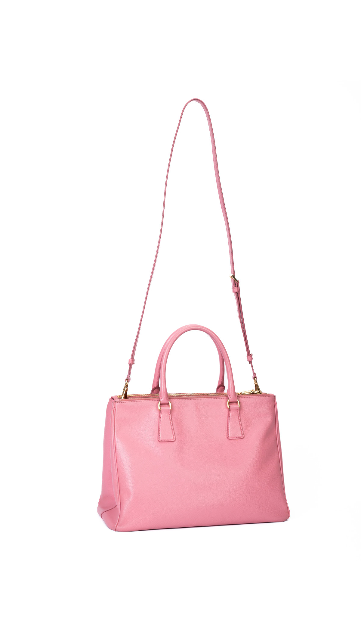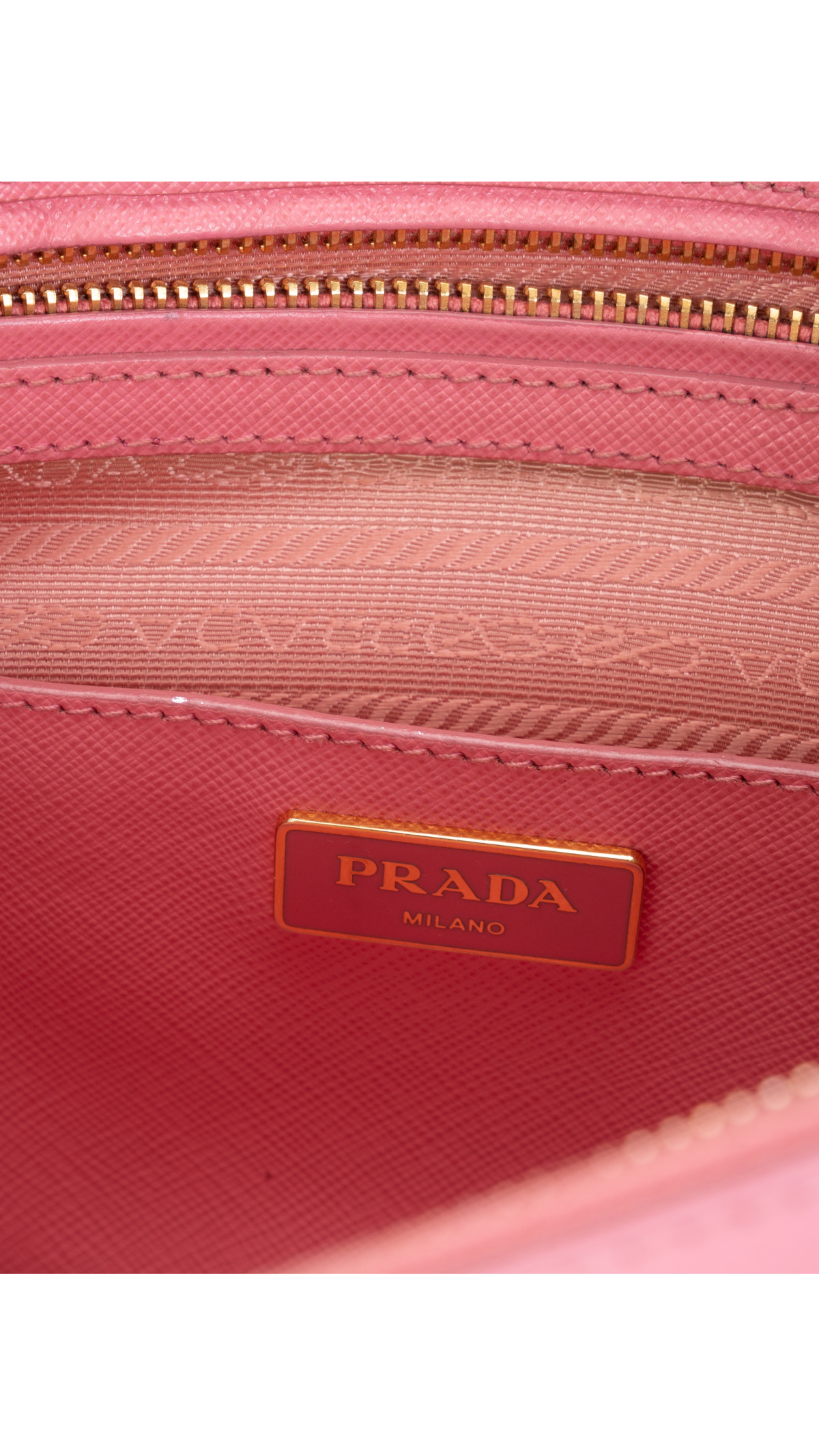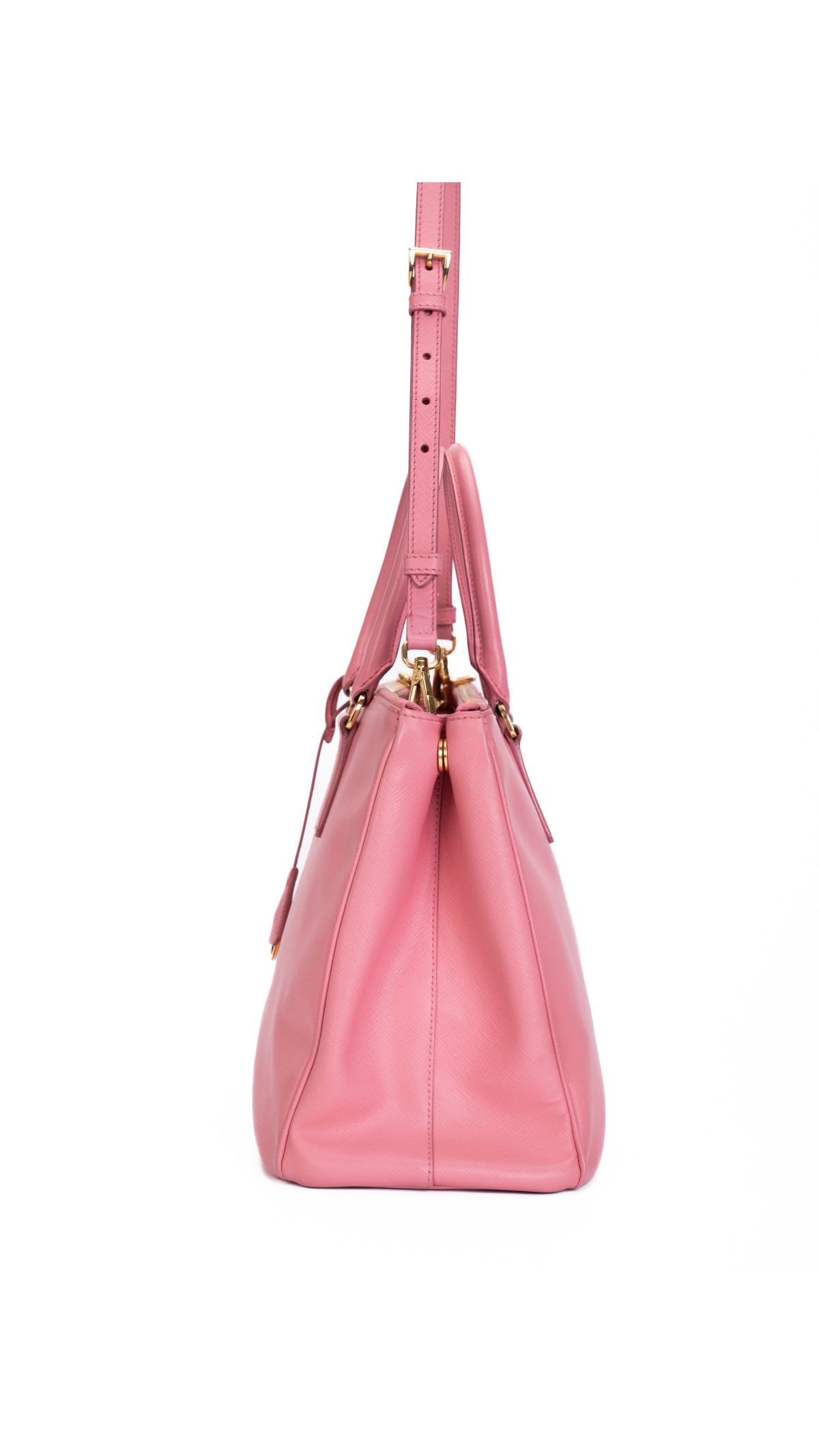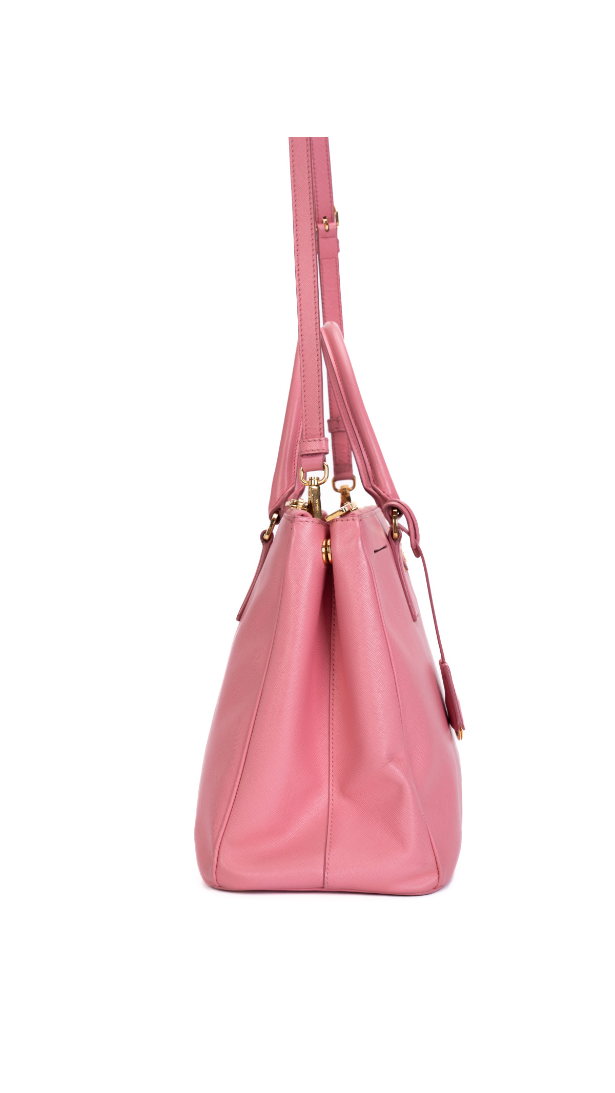 Prada Saffiano Lux Tote er en klassiker fra Prada, kjent for sitt elegante og tidløse design kombinert med det slitesterke Saffiano-skinnet. Denne modellen kommer i en nydelig rosa farge som gir et friskt og feminint uttrykk, samtidig som den har strukturert skinn som gjør vesken motstandsdyktig mot riper og slitasje.