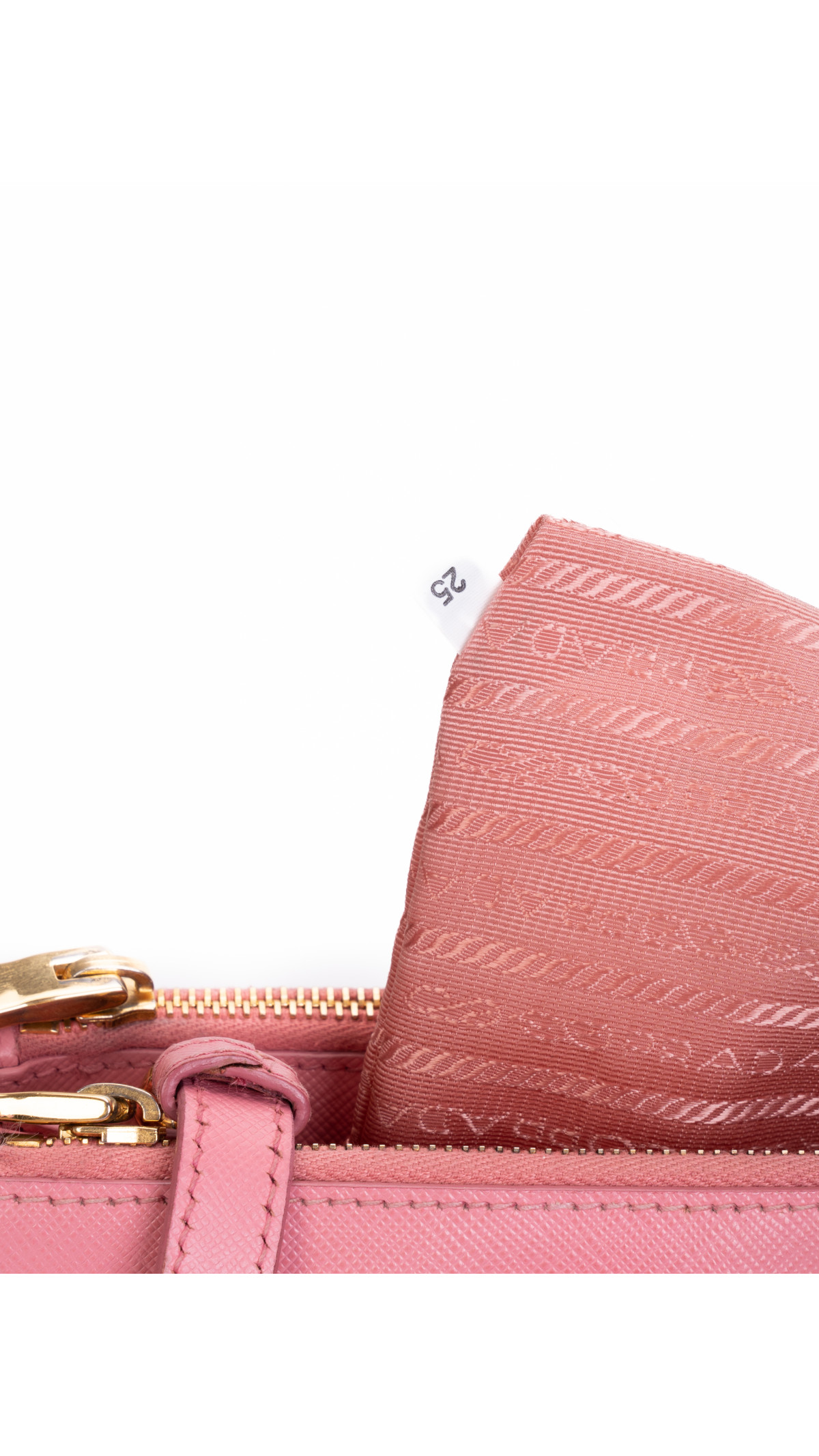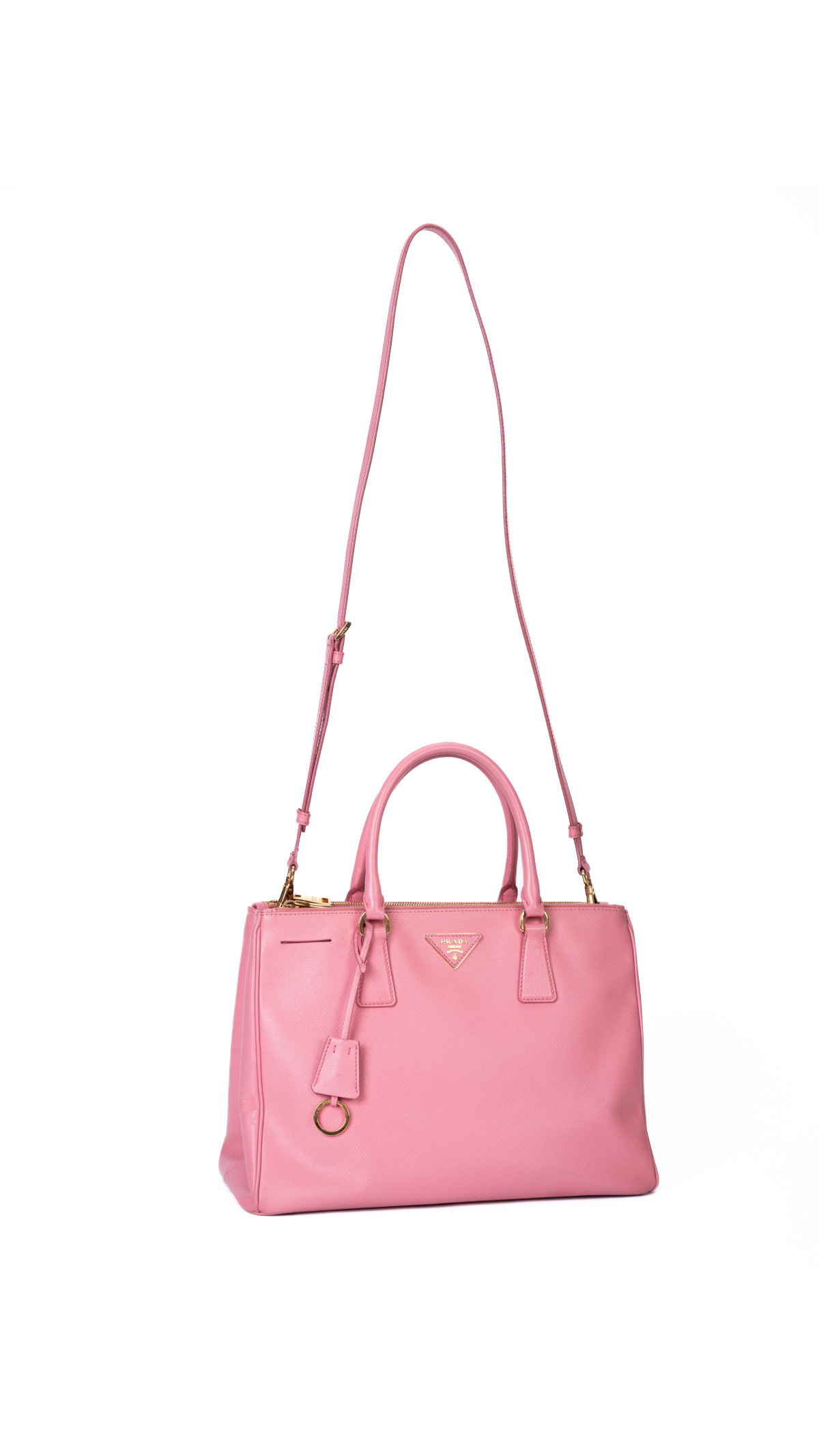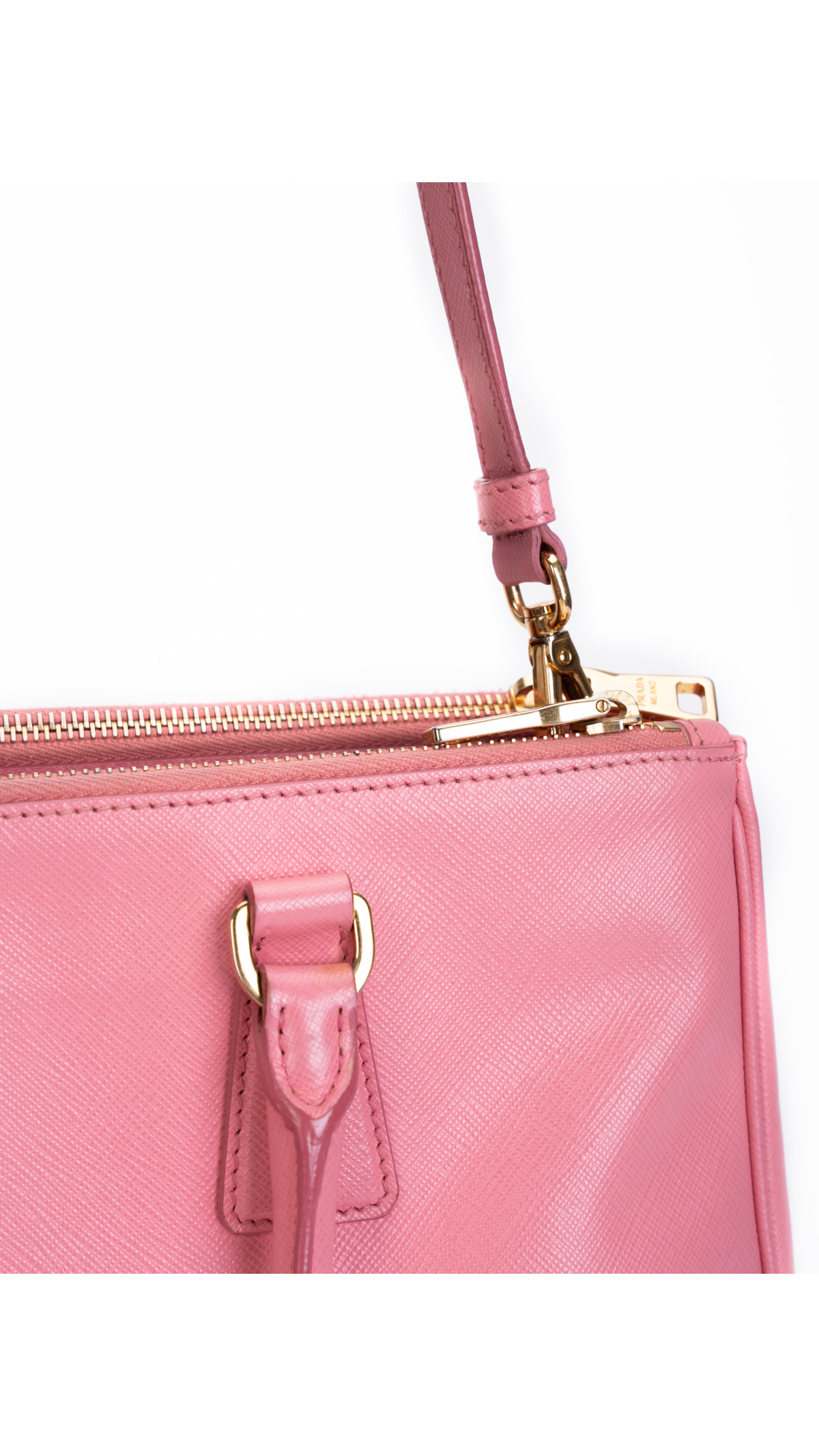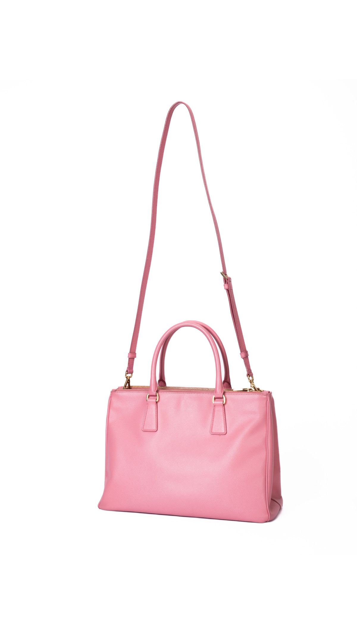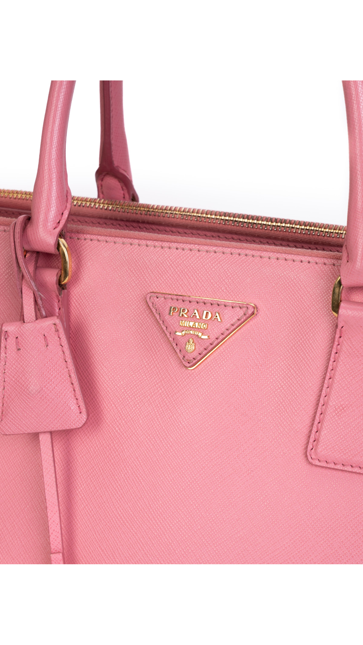 Prada Saffiano Lux Tote er en klassiker fra Prada, kjent for sitt elegante og tidløse design kombinert med det slitesterke Saffiano-skinnet. Denne modellen kommer i en nydelig rosa farge som gir et friskt og feminint uttrykk, samtidig som den har strukturert skinn som gjør vesken motstandsdyktig mot riper og slitasje.