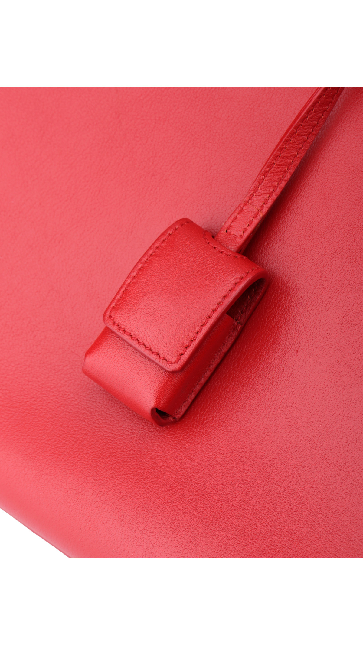 Saint Laurent Sac de Jour er en tidløs og elegant veske, kjent for sin strukturerte fasong og minimalistiske design. Denne modellen er laget i glatt rødt skinn med gullfarget hardware, og kommer med doble håndtak samt en avtagbar og justerbar skulderrem som gir fleksibilitet mellom håndholdt, skulder og crossbody-bæring.