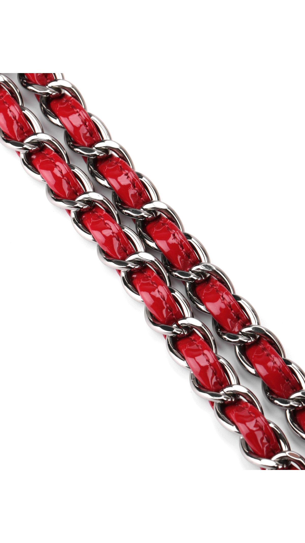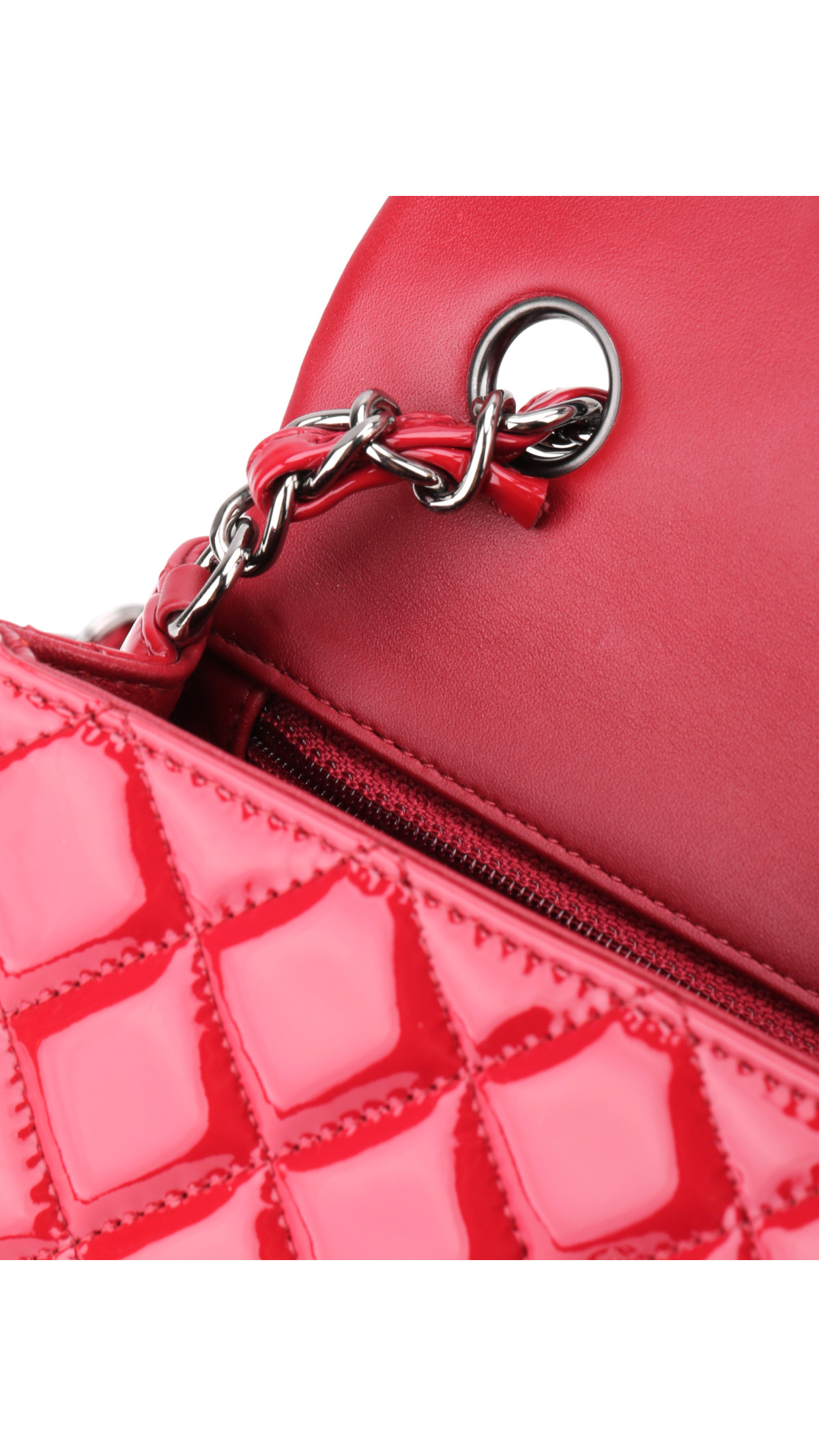 Farge: Dark Rødt patent skinn med sølvfarget hardware