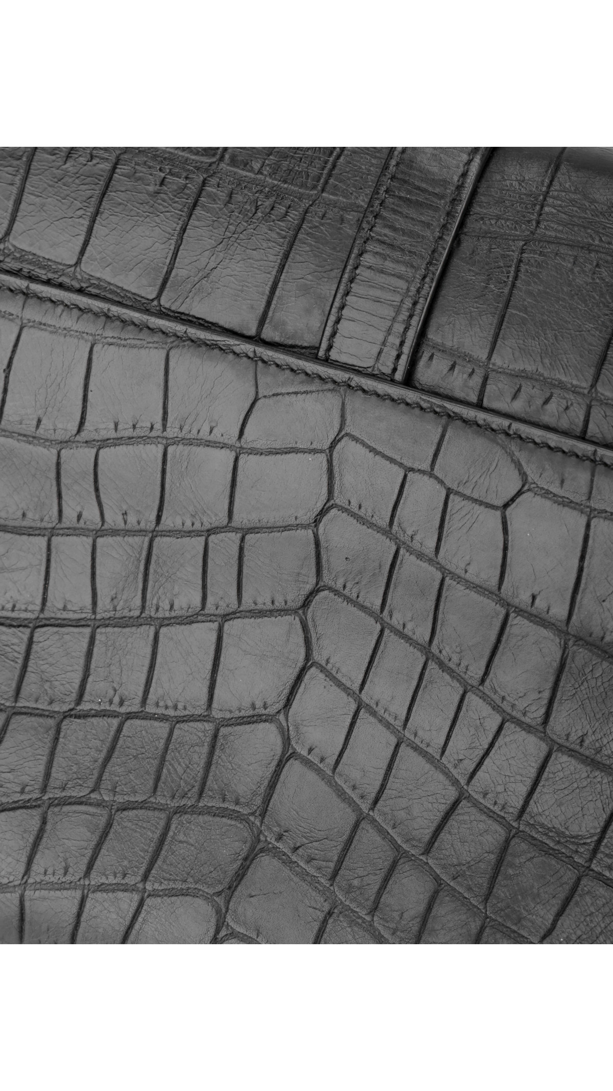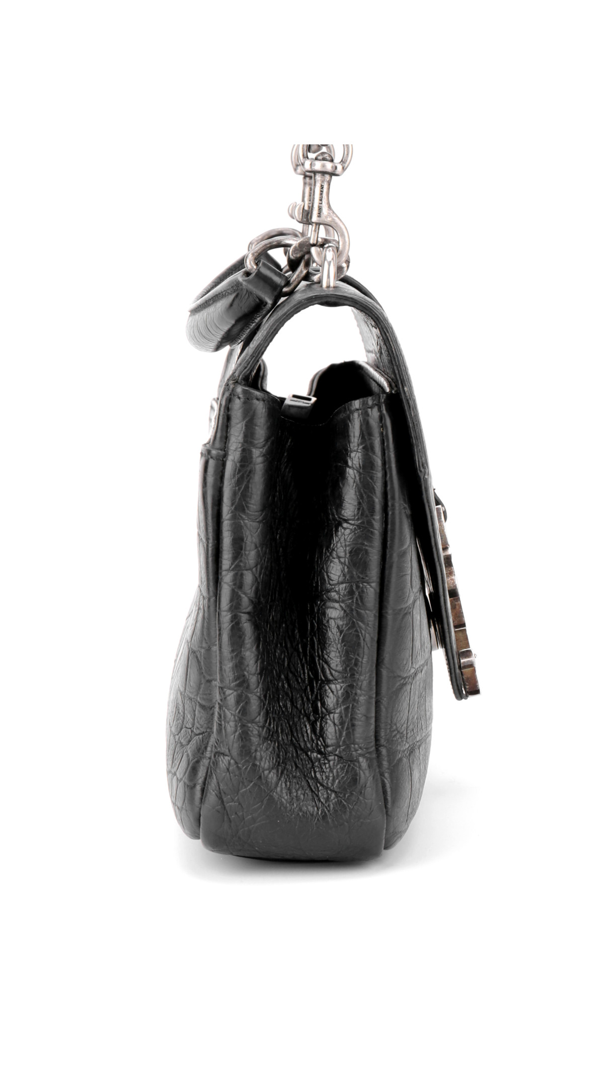 Farge: Sort krokopreget skinn med sølvfarget hardware