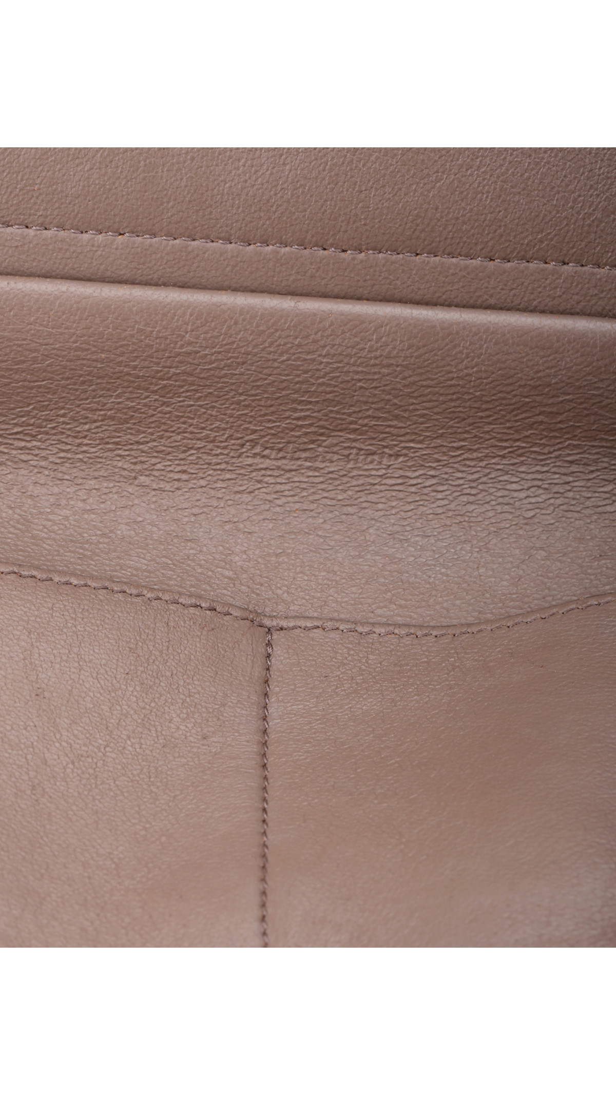 Endelig fikk vi inn enda en av denne etterspurte modellen fra Chanel! Den er i veldig fin brukt stand for å være en veske i en så lys farge. Den har noen få bruksmerker/misfarging på undersiden og rundt hjørnene....