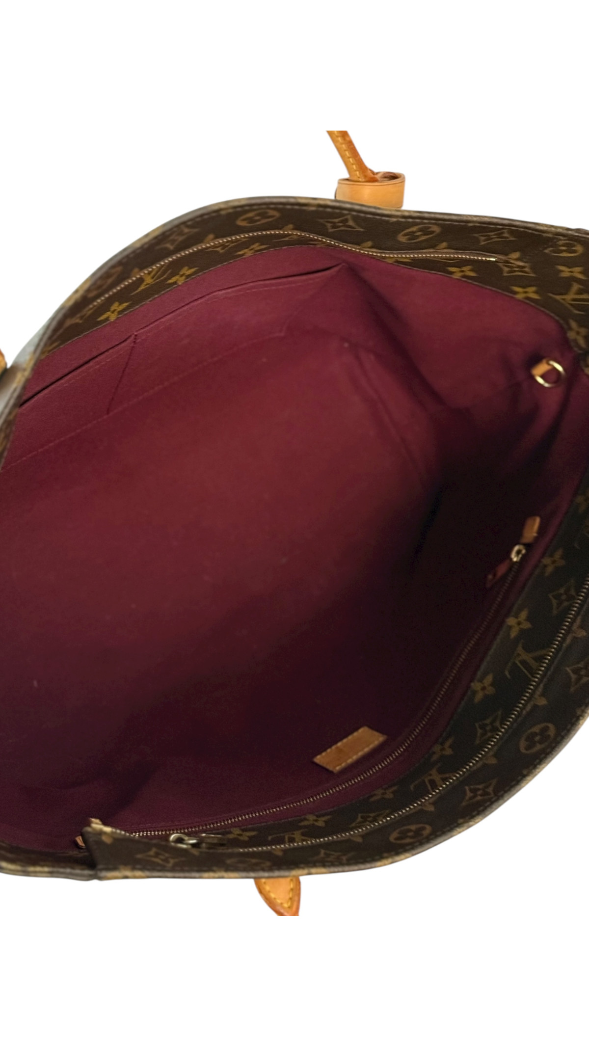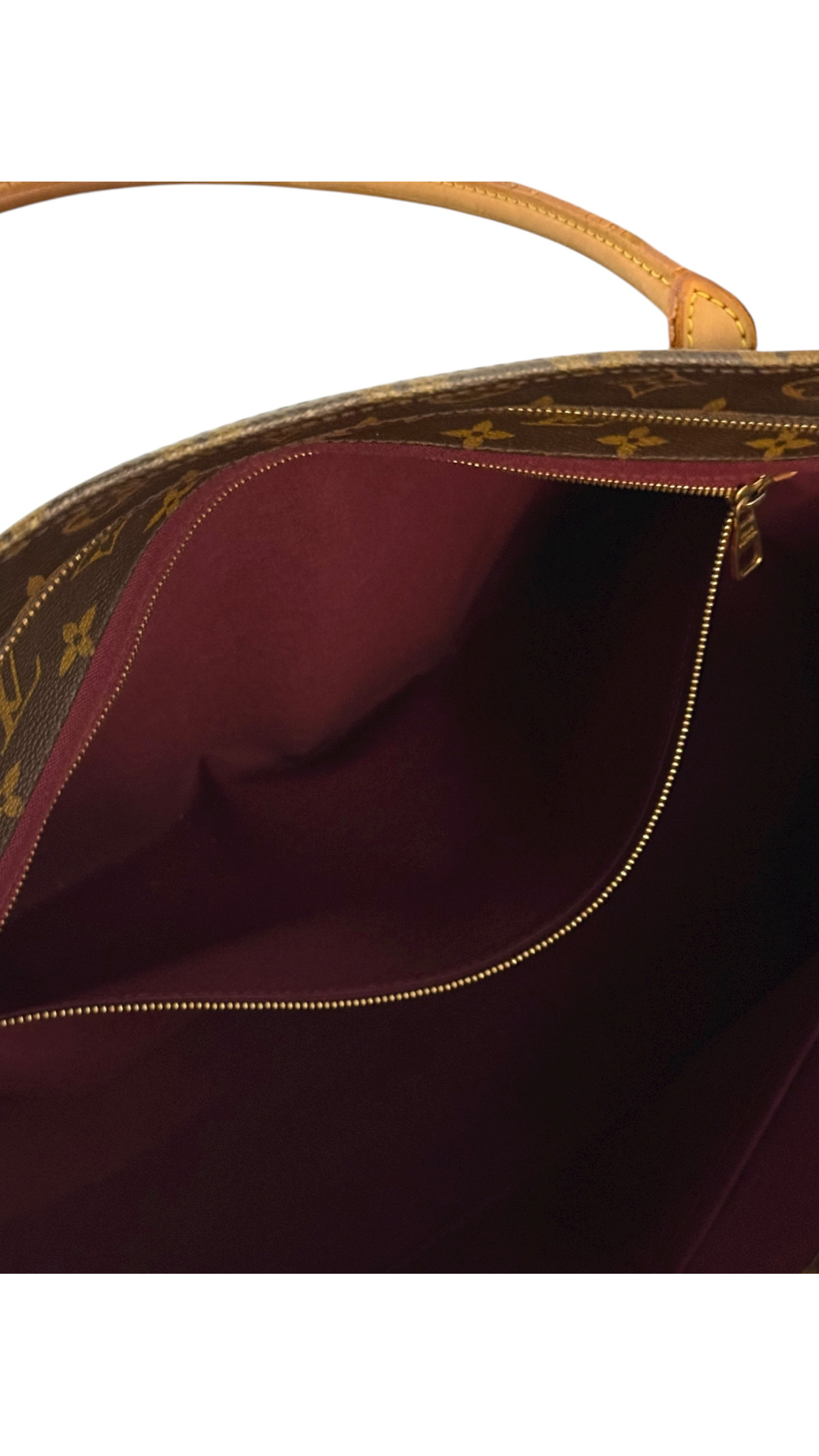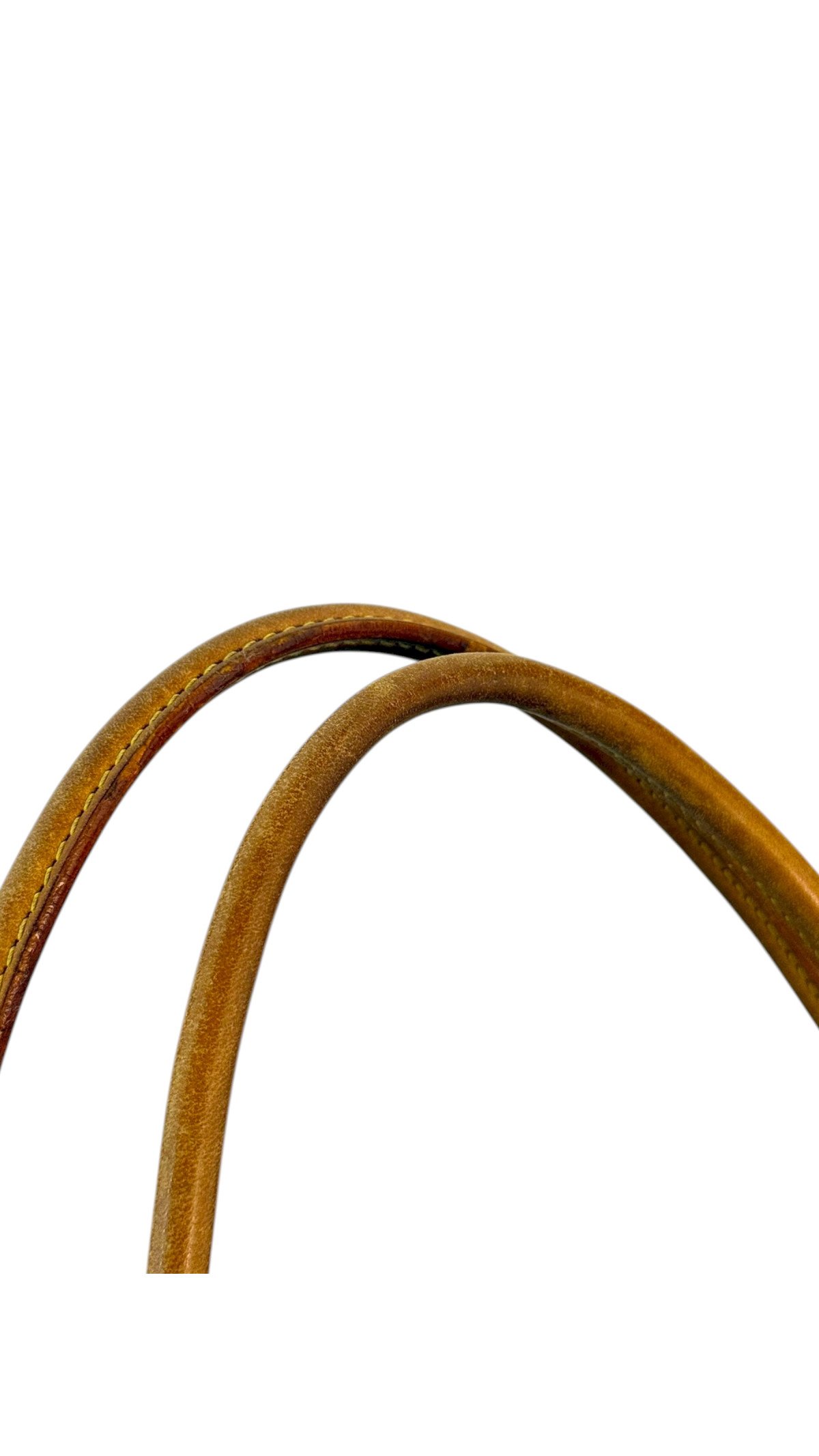 Klassisk og romslig tote-veske fra Louis Vuitton i slitesterkt monogram canvas med mørkebrune skinnhåndtak.
