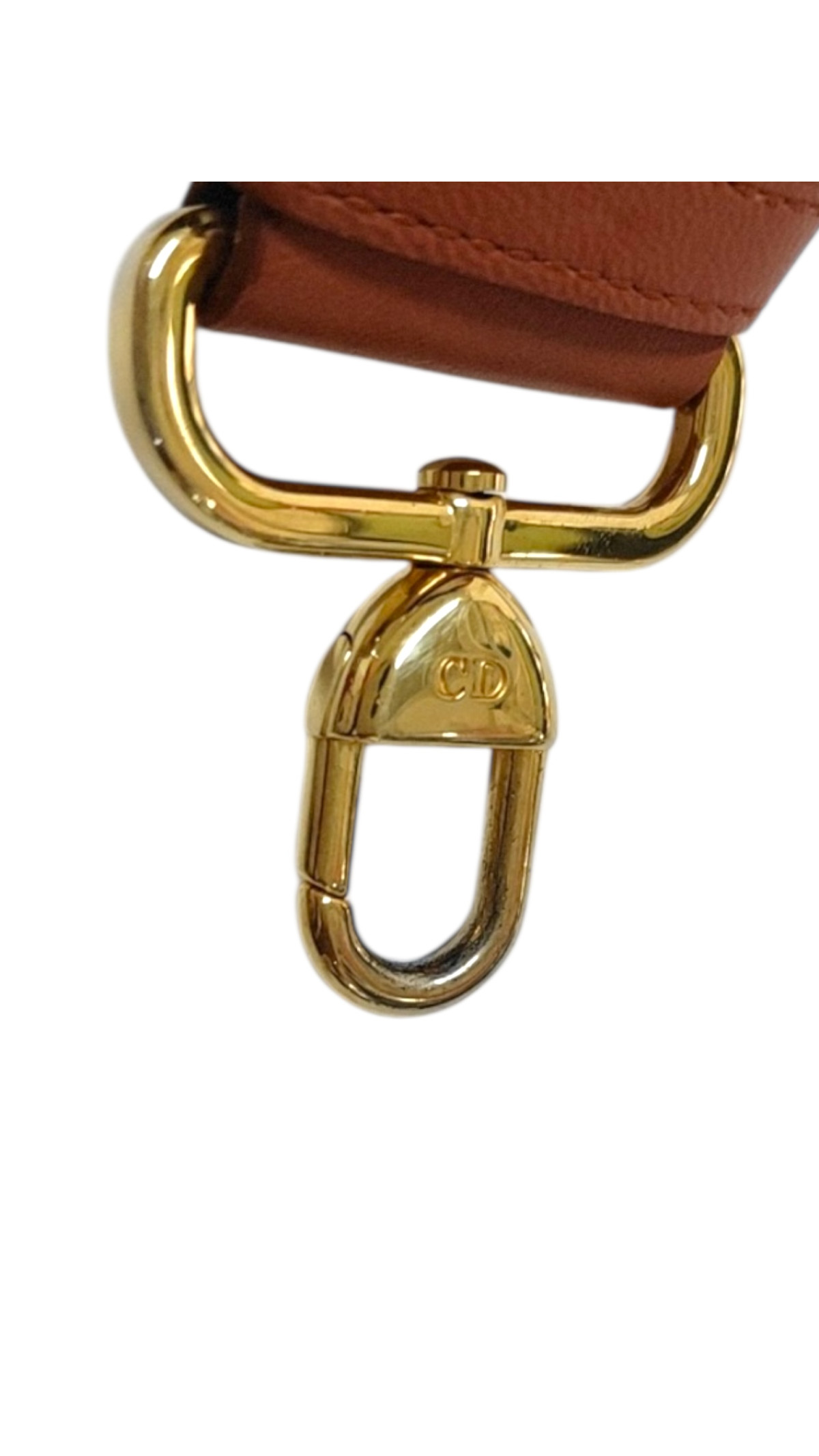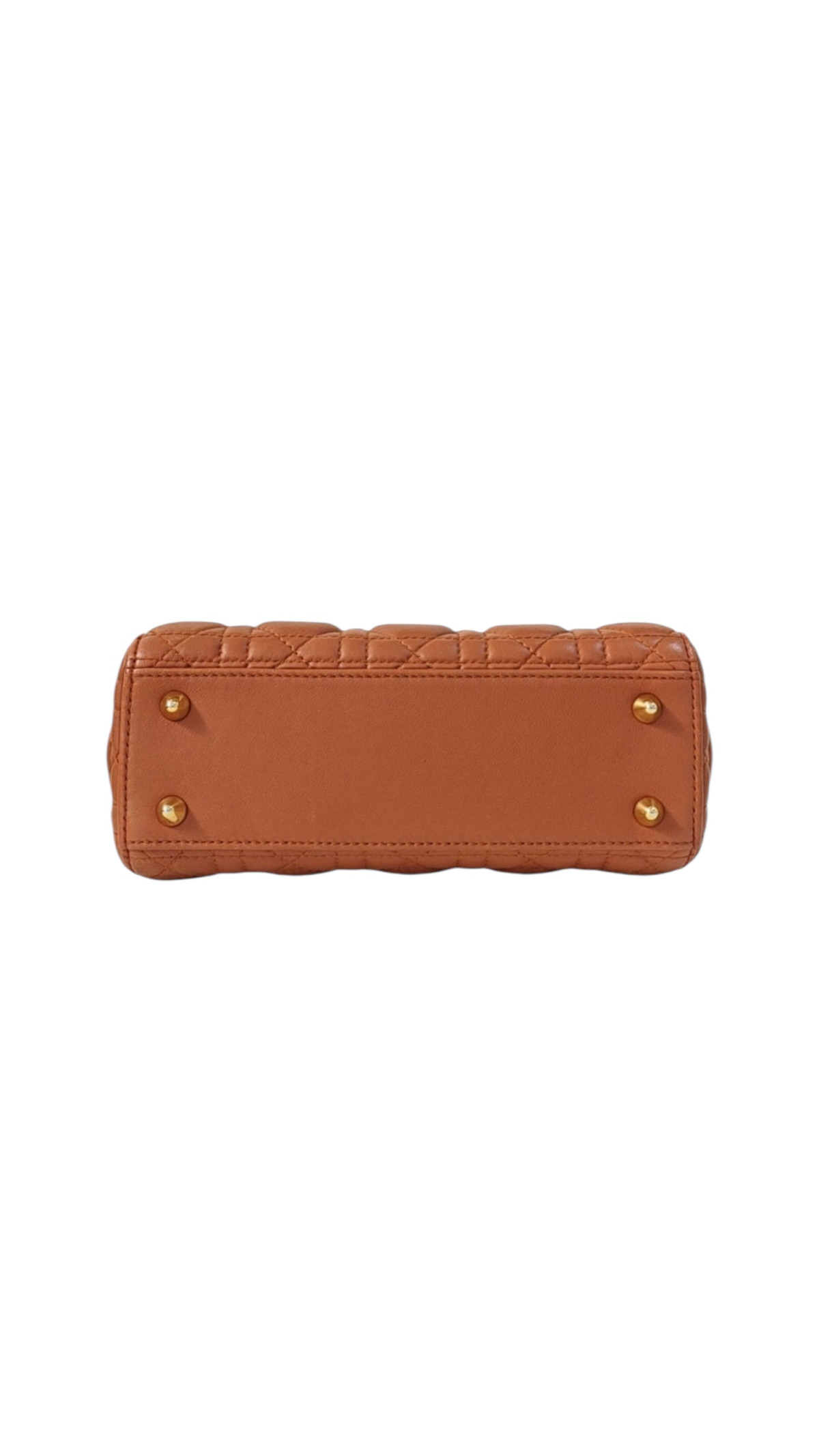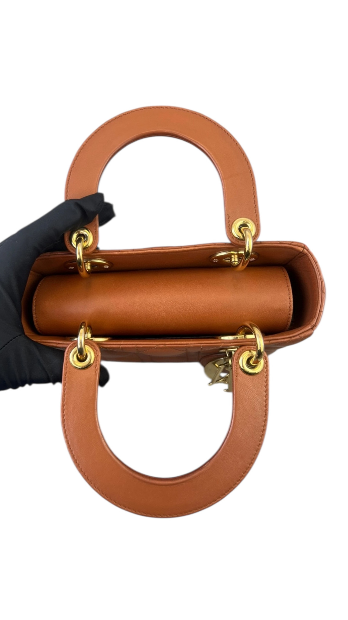 Lady Dior er et tidløst ikon som legemliggjør eleganse, femininitet og utsøkt håndverk. Denne modellen er utført i mykt, quiltet lammeskinn i en varm oransje tone, prydet med det klassiske Cannage-mønsteret som er blitt et av Diors mest kjente symboler.