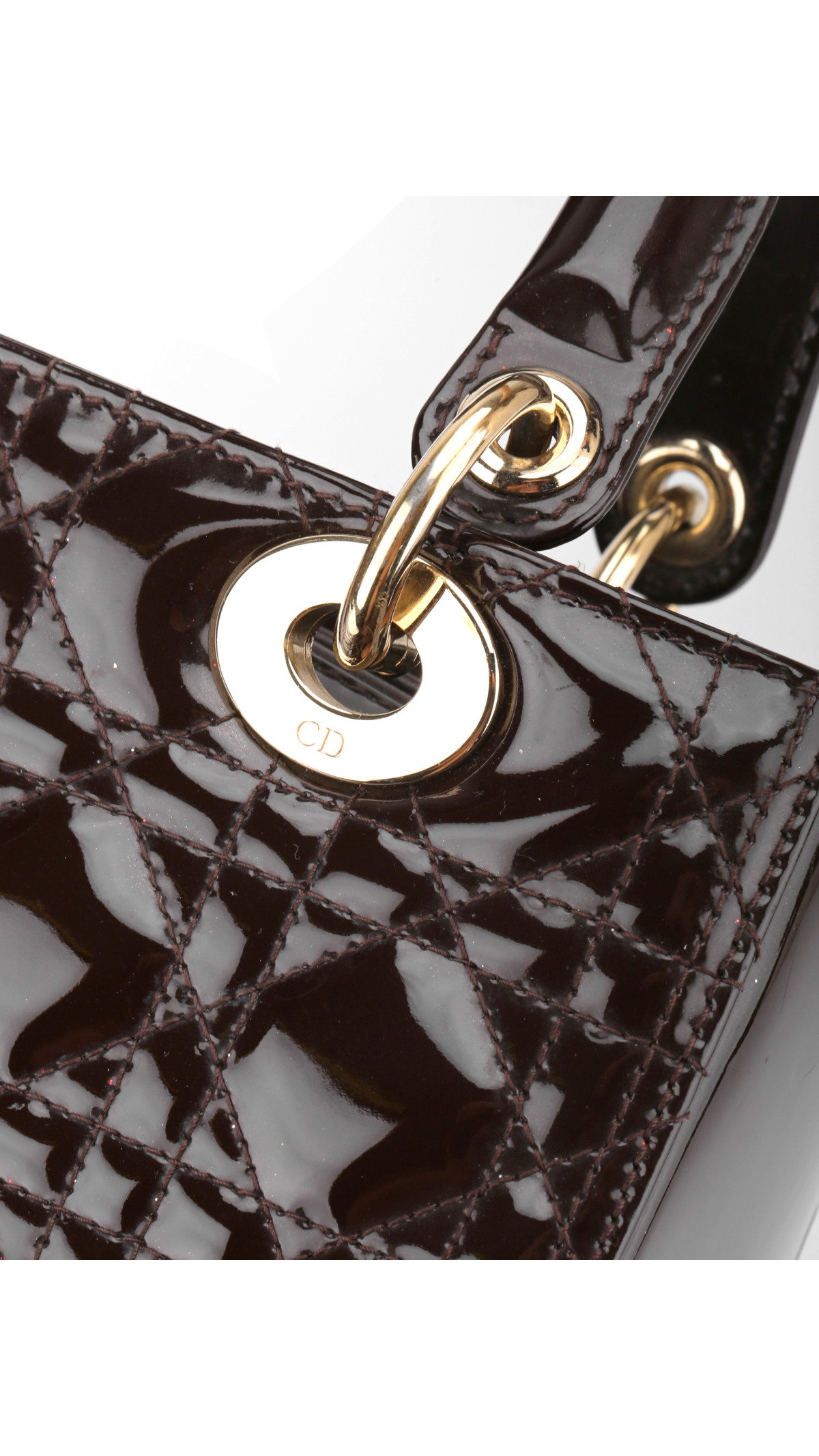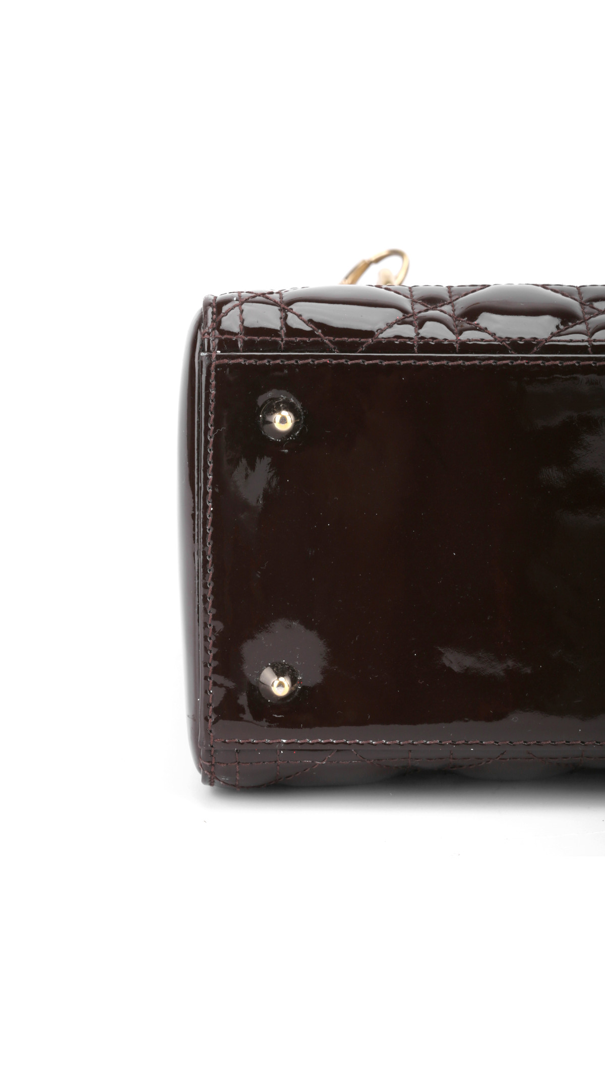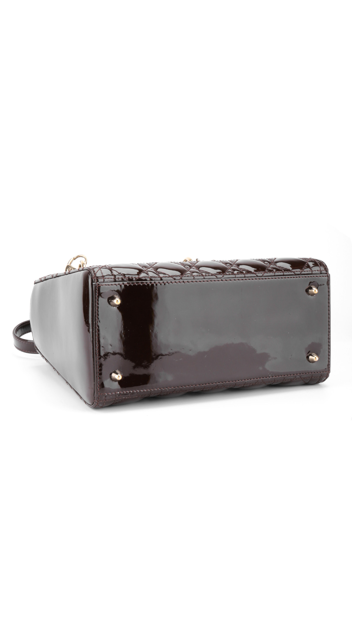 Christian Dior Lady Dior Medium i mørk brun patent skinn