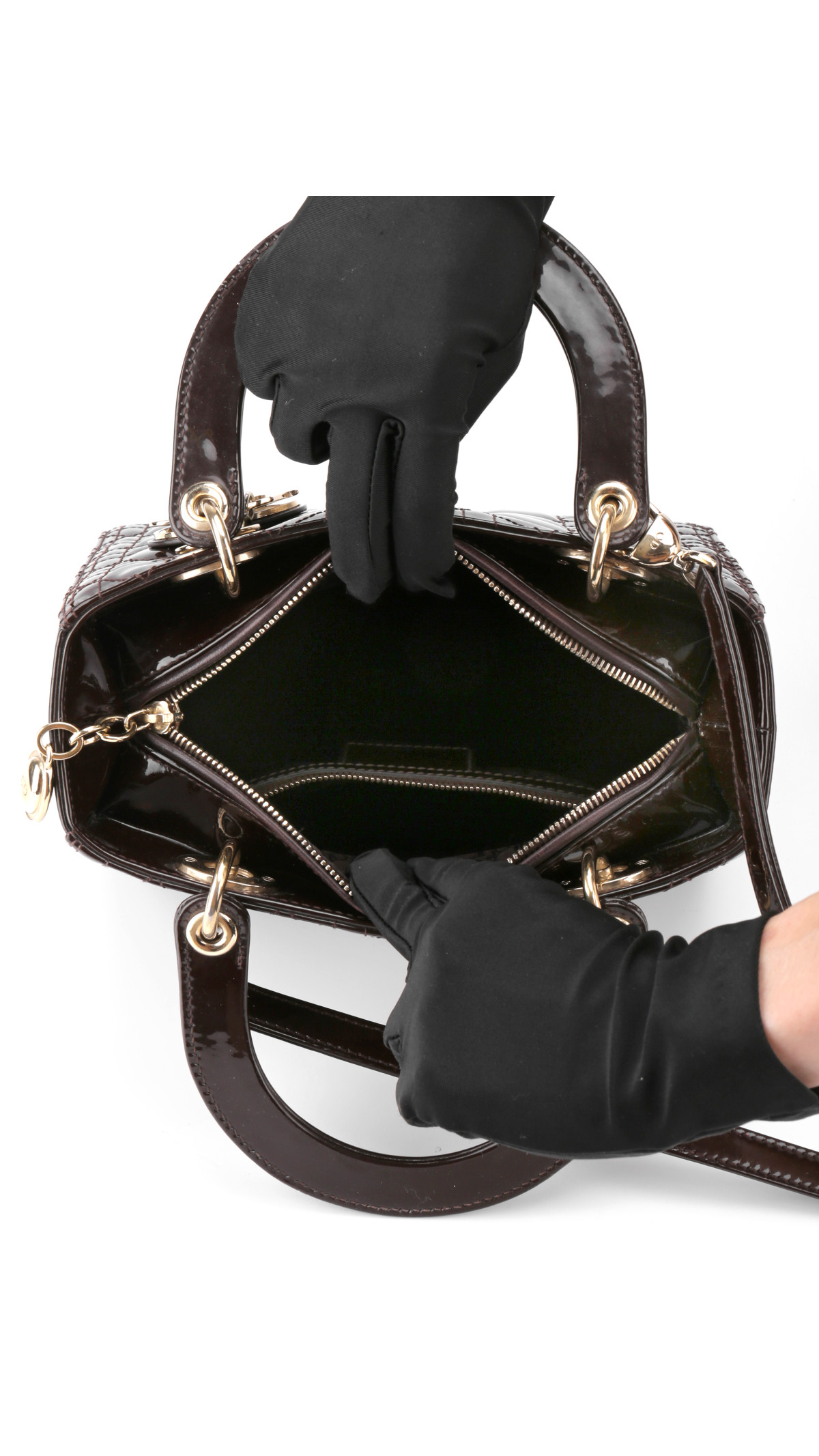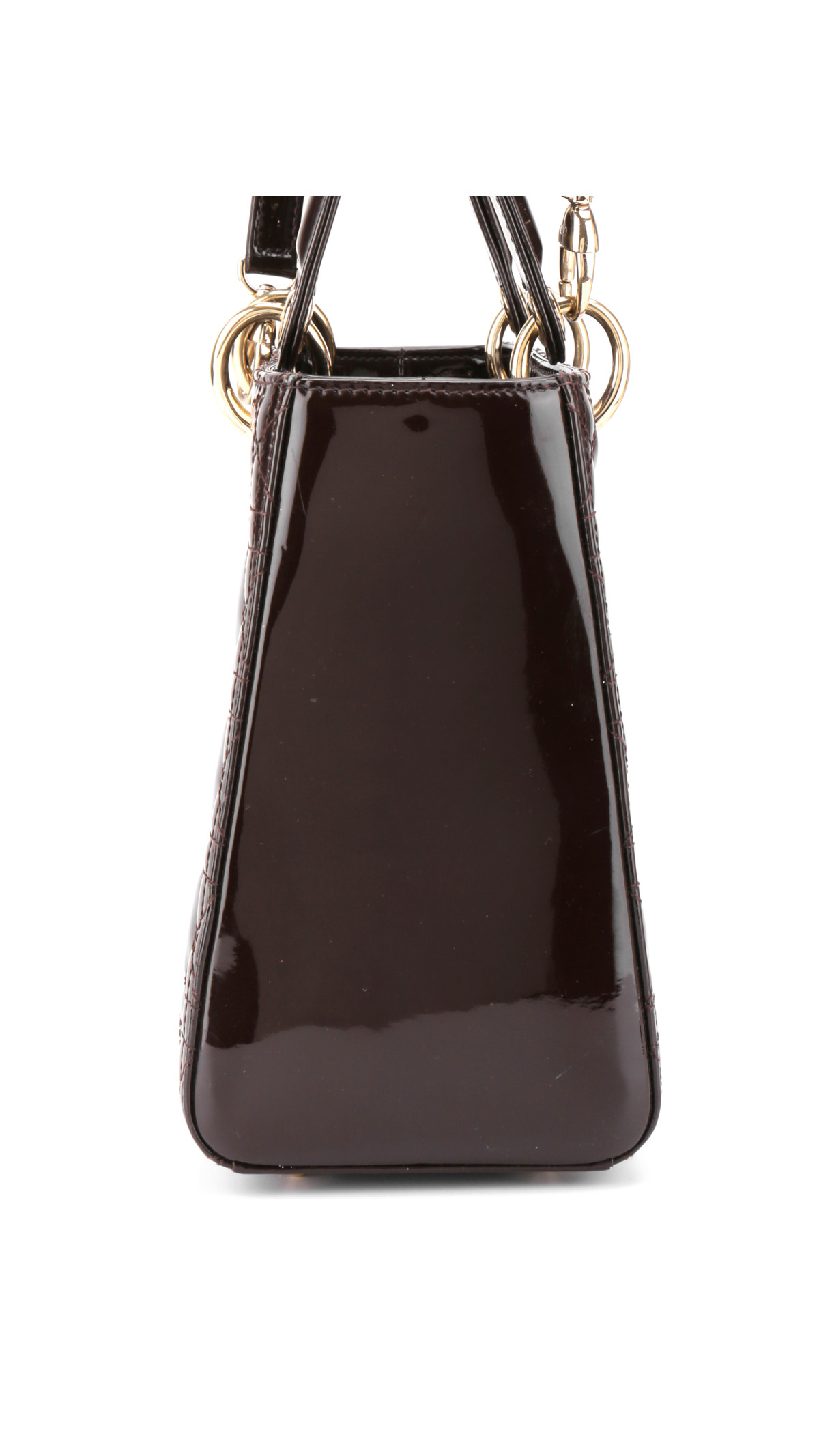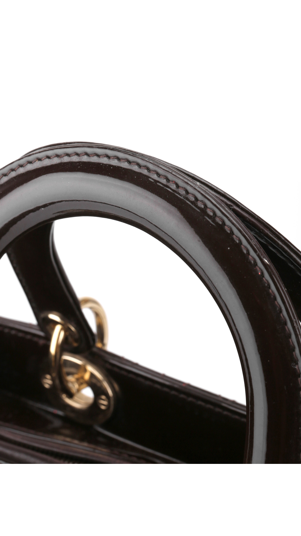 Christian Dior Lady Dior Medium i mørk brun patent skinn