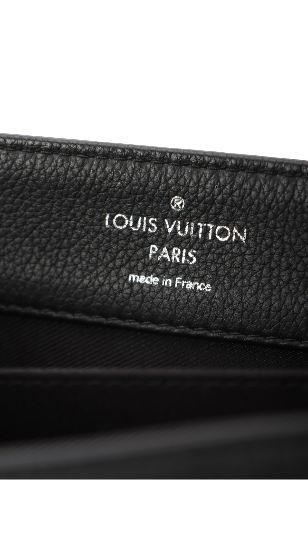 Farge: Mørkeblå monogram med gull hardware.