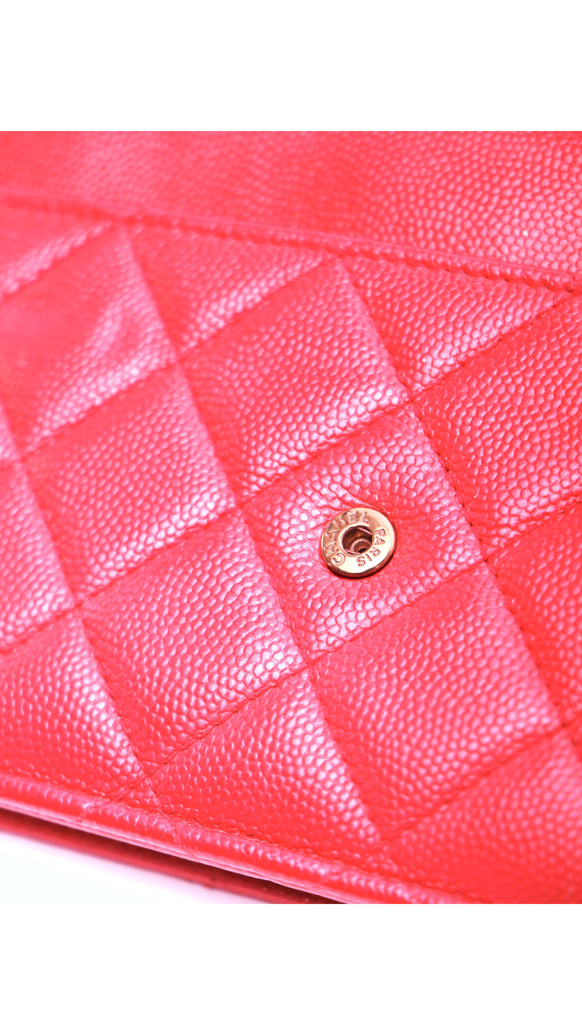 En helt nydelig Chanel shoulder bag er laget av patent leather, med sølv Hardware. Denne gangen i en nydelig mørkerød farge som gjør den til et must have for deg som elsker Chanel og med litt farger!