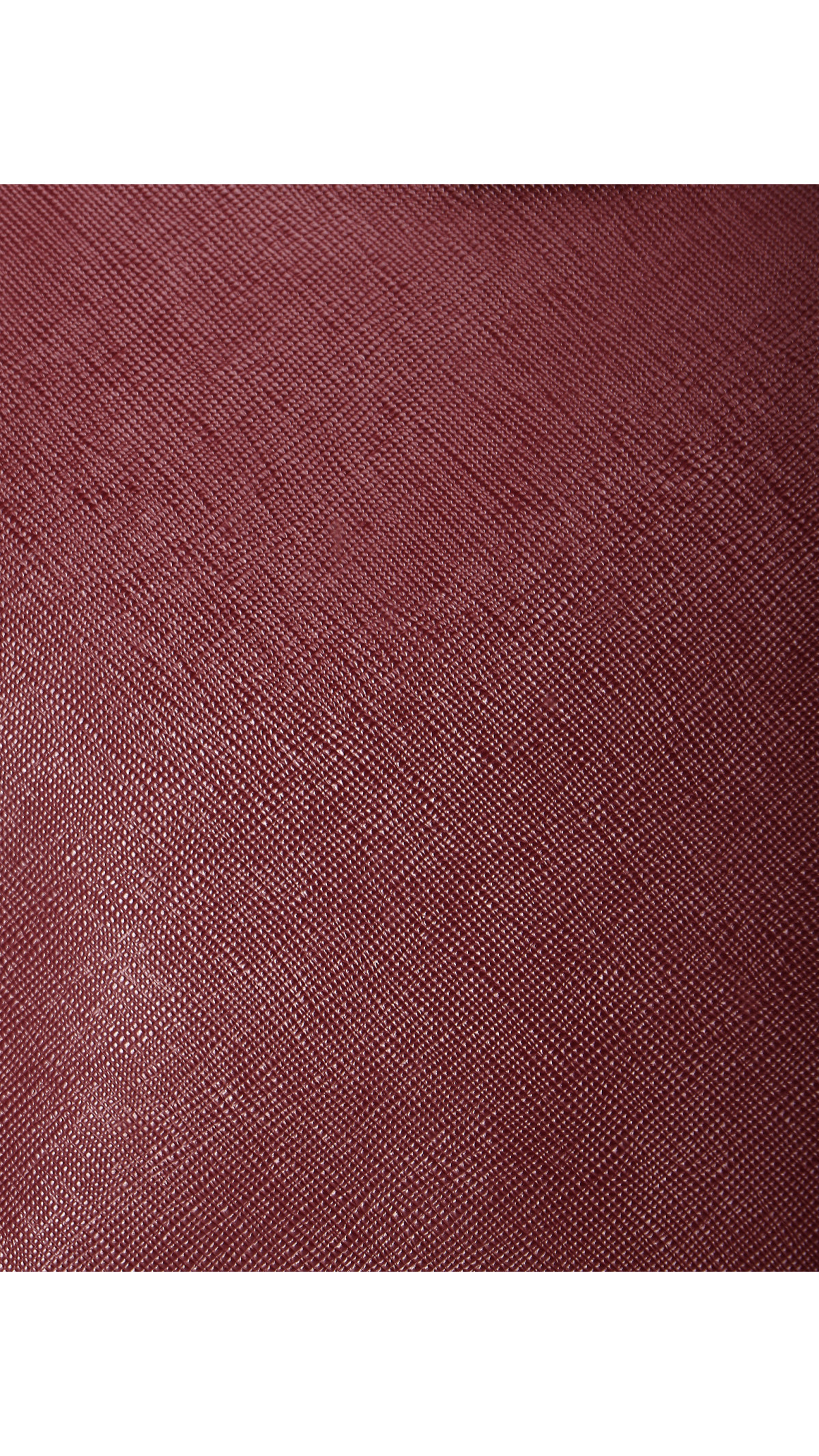 Farge: Burgund Saffiano-skinn med gullfarget hardware