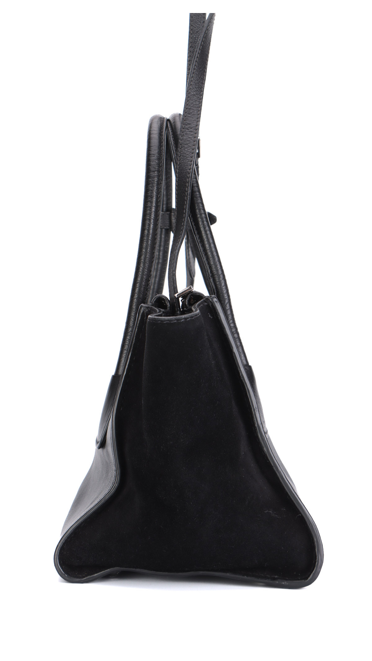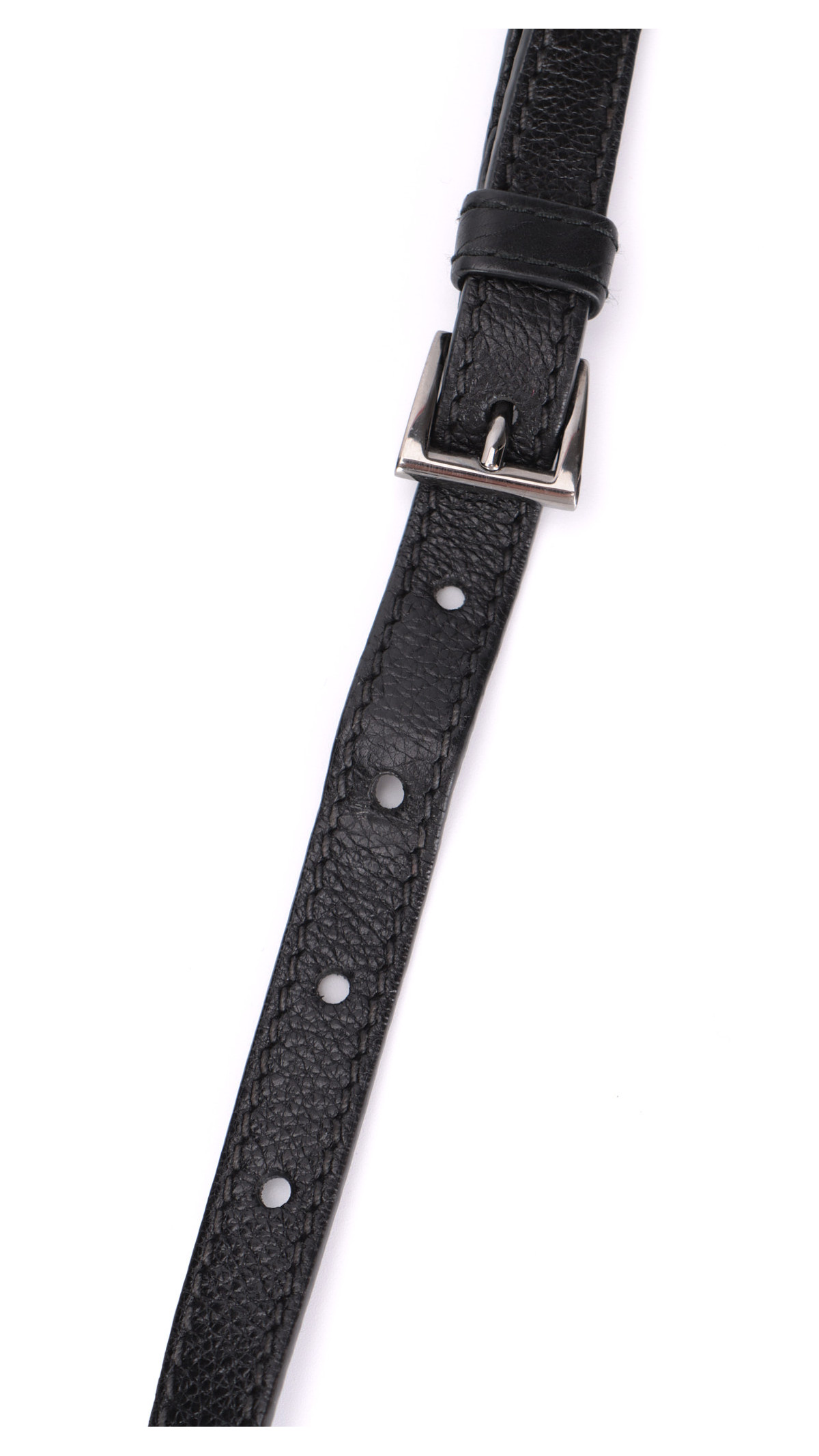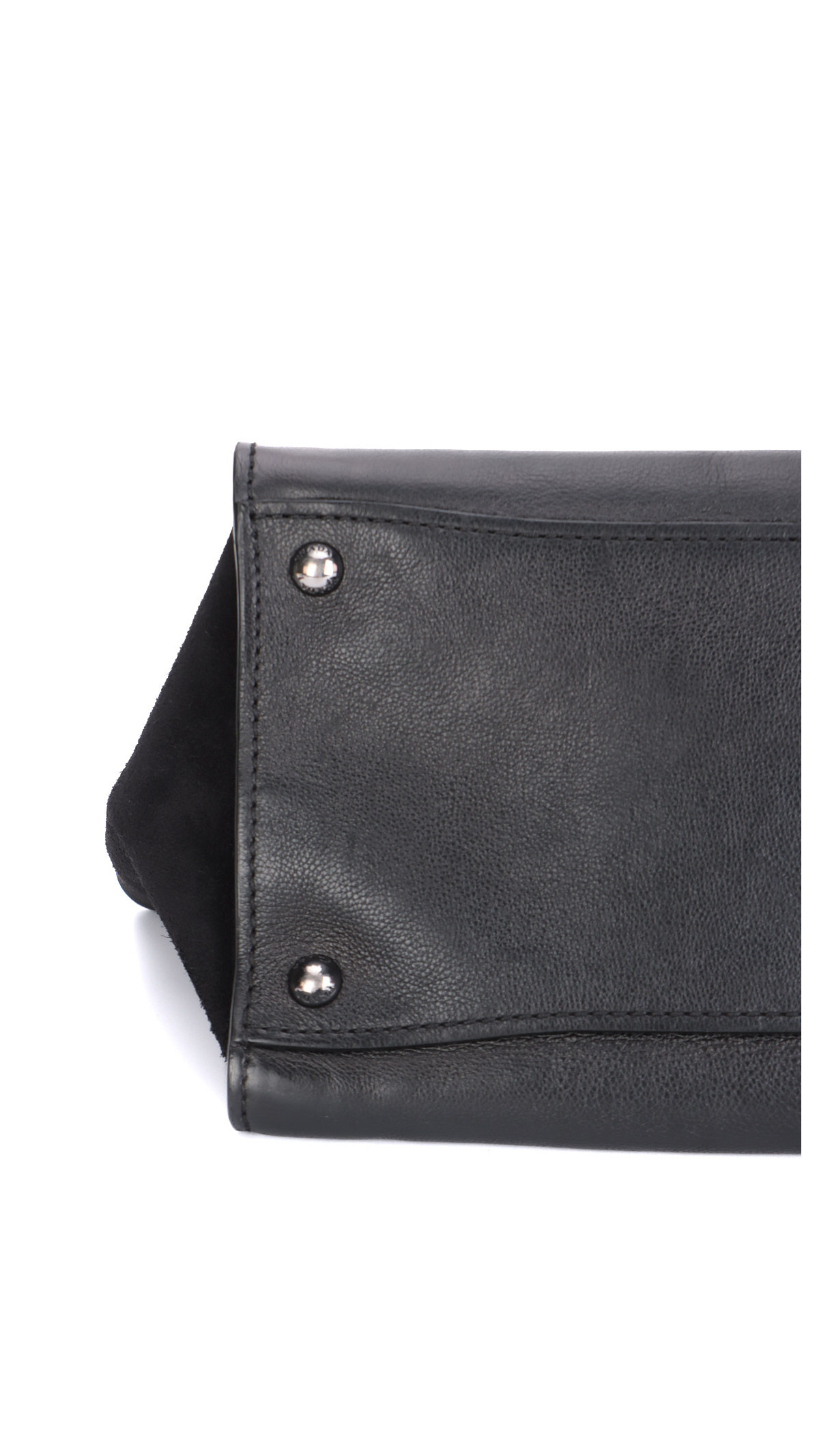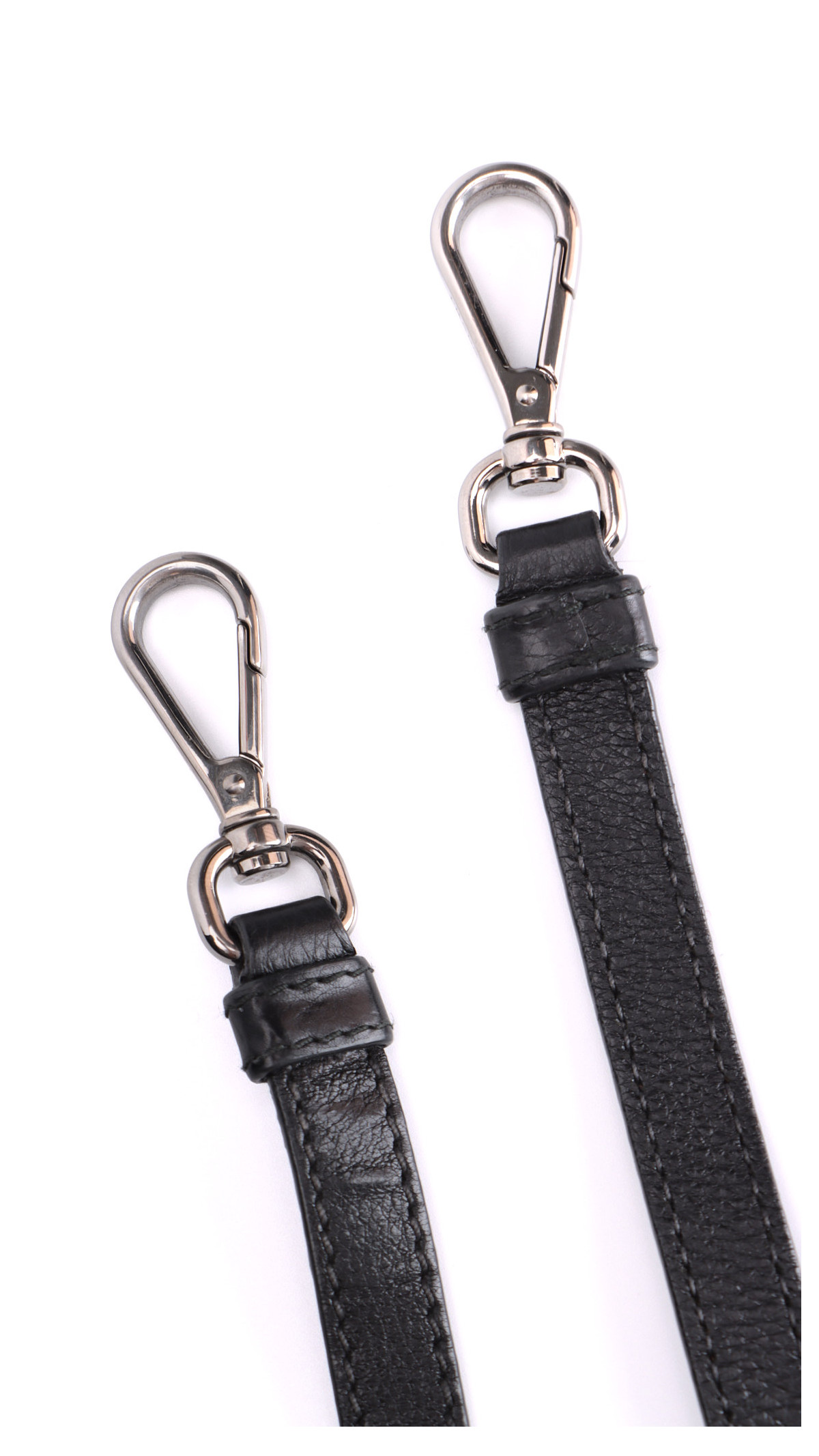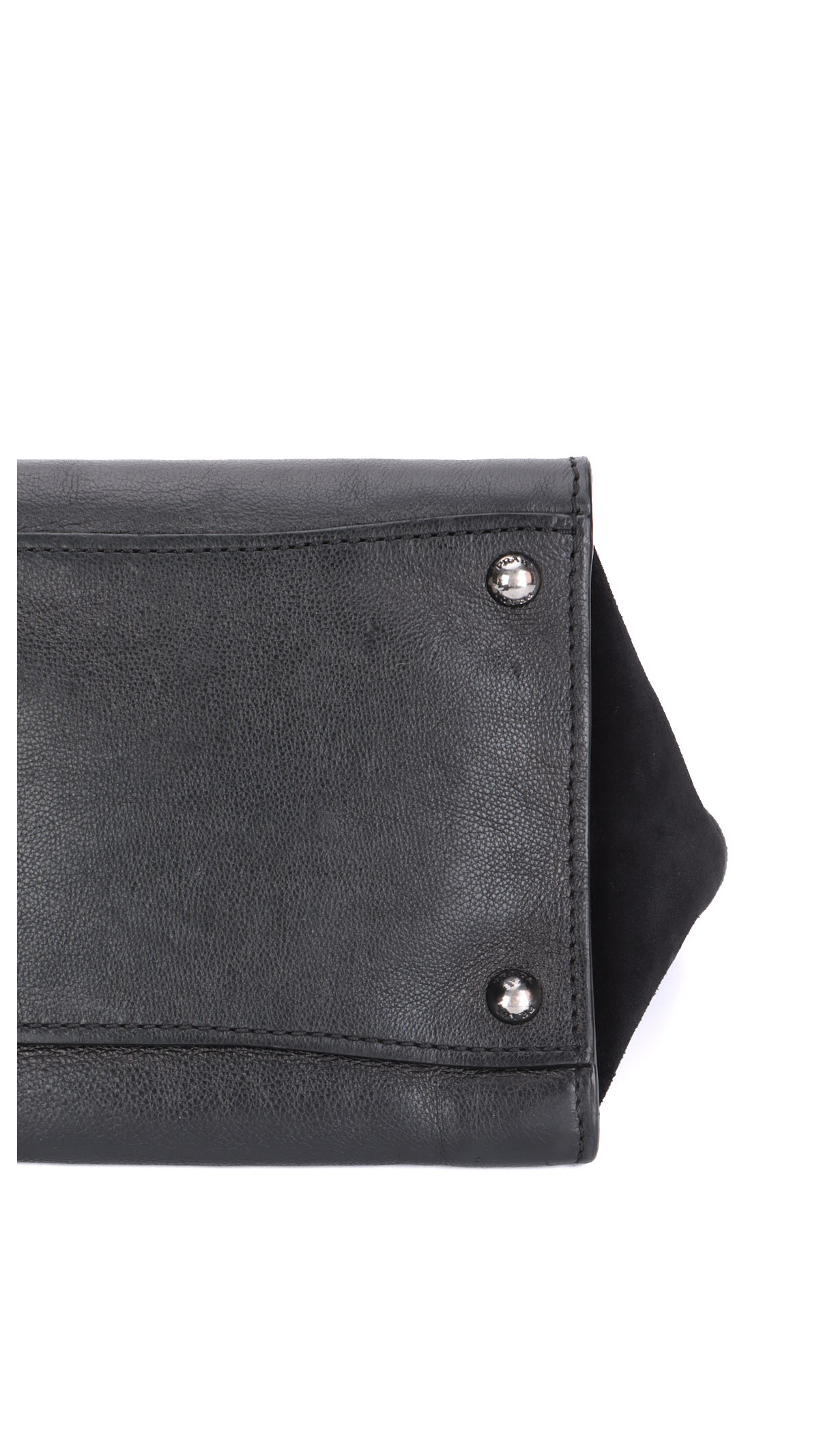Farge: Svart glace-kalveskinn med sølvfarget hardware
