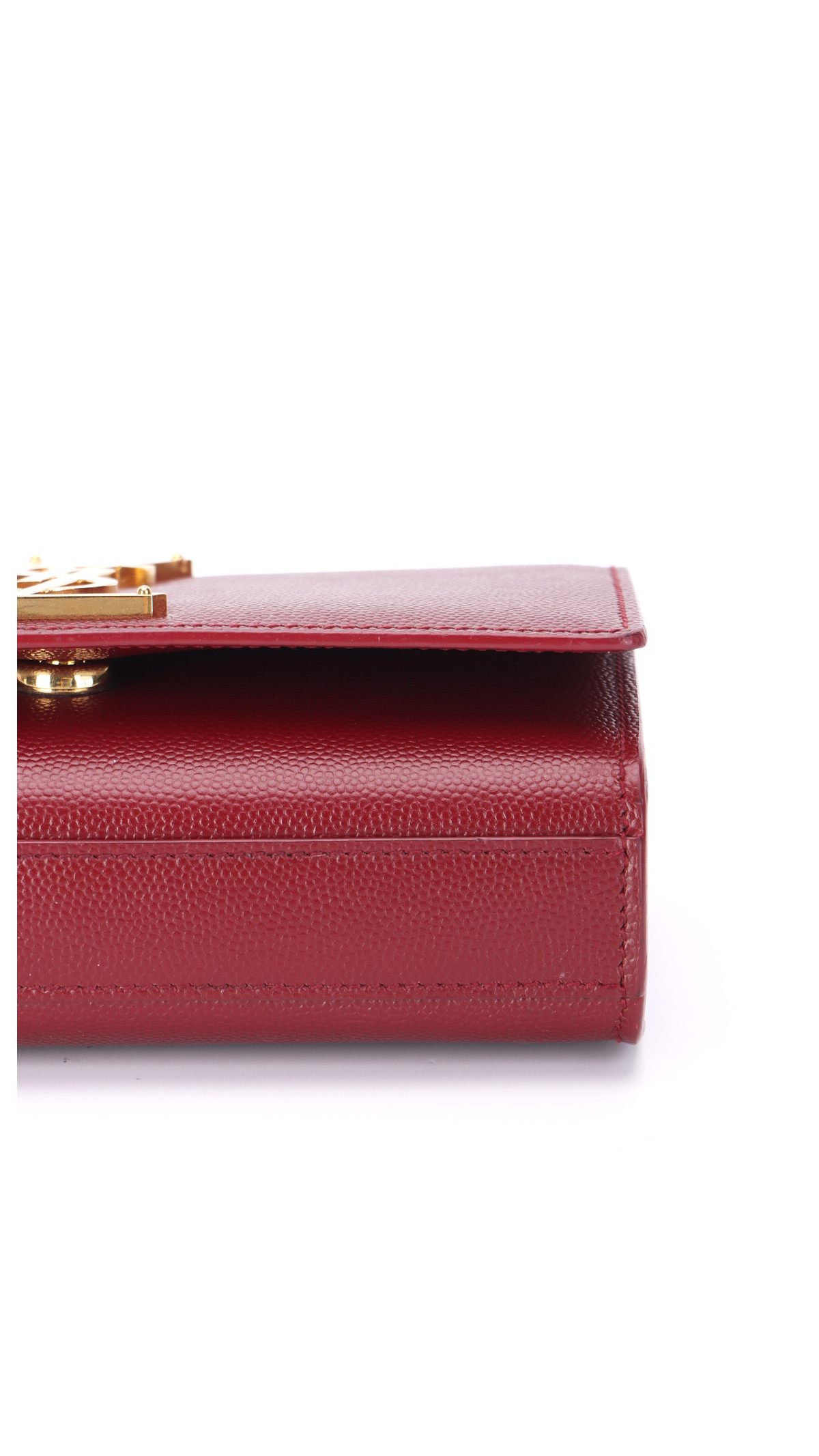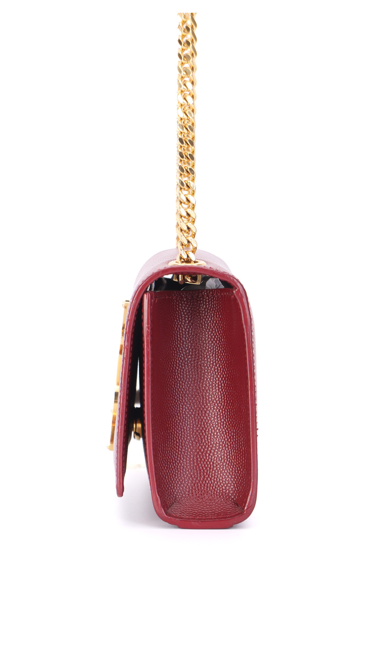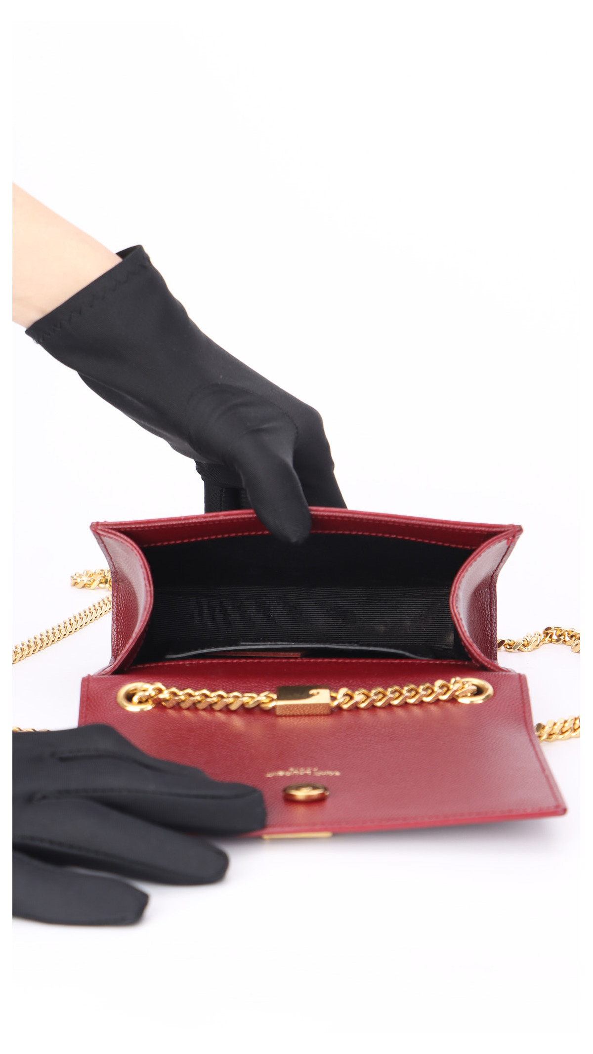 Stilren Gucci Soho-veske i sort skinn med preget GG-logo og elegant gullfarget kjederem. Vesken har en strukturert fasong med klaff, og er perfekt for kveldsbruk eller når du ønsker et sofistikert uttrykk. Passer til...