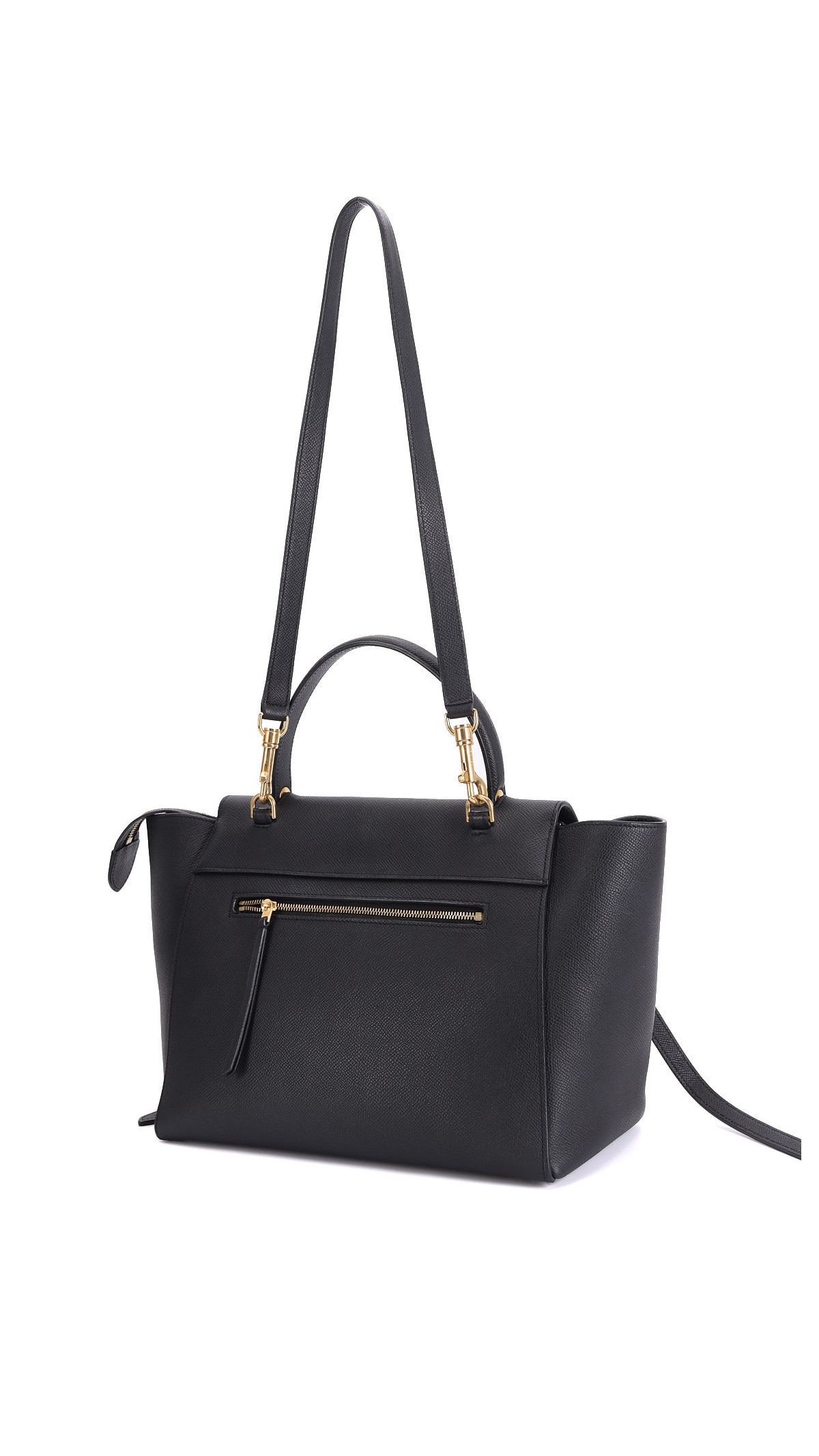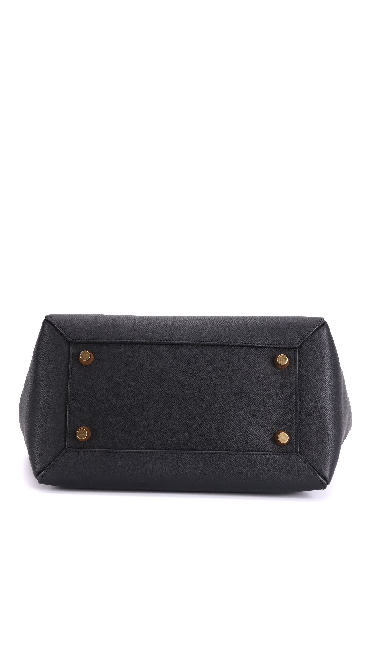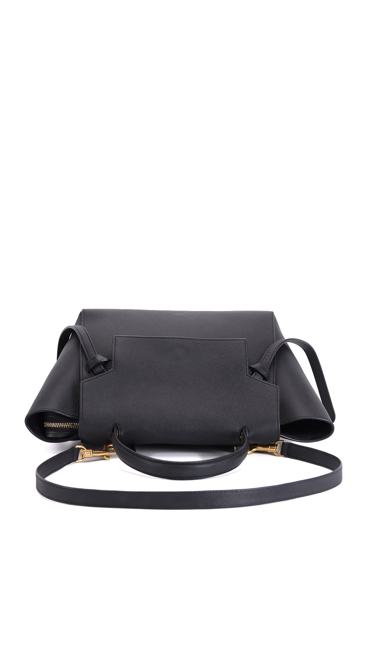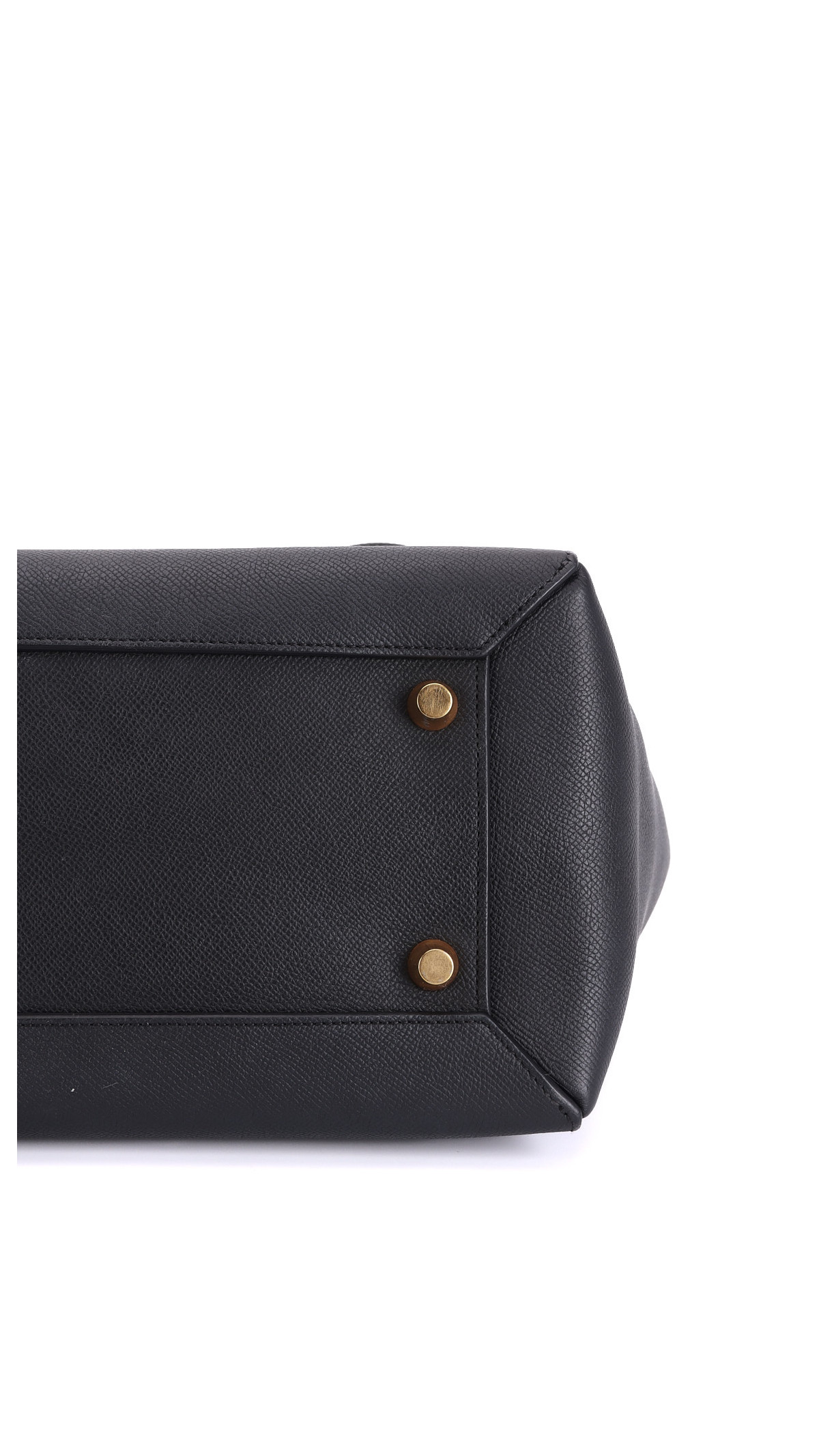Ikonisk Celine Luggage Tote i en elegant kombinasjon av beige canvas, svart skinn og oransje sidepaneler i mykt kalveskinn. En tidløs veske som kombinerer luksus med funksjonalitet.